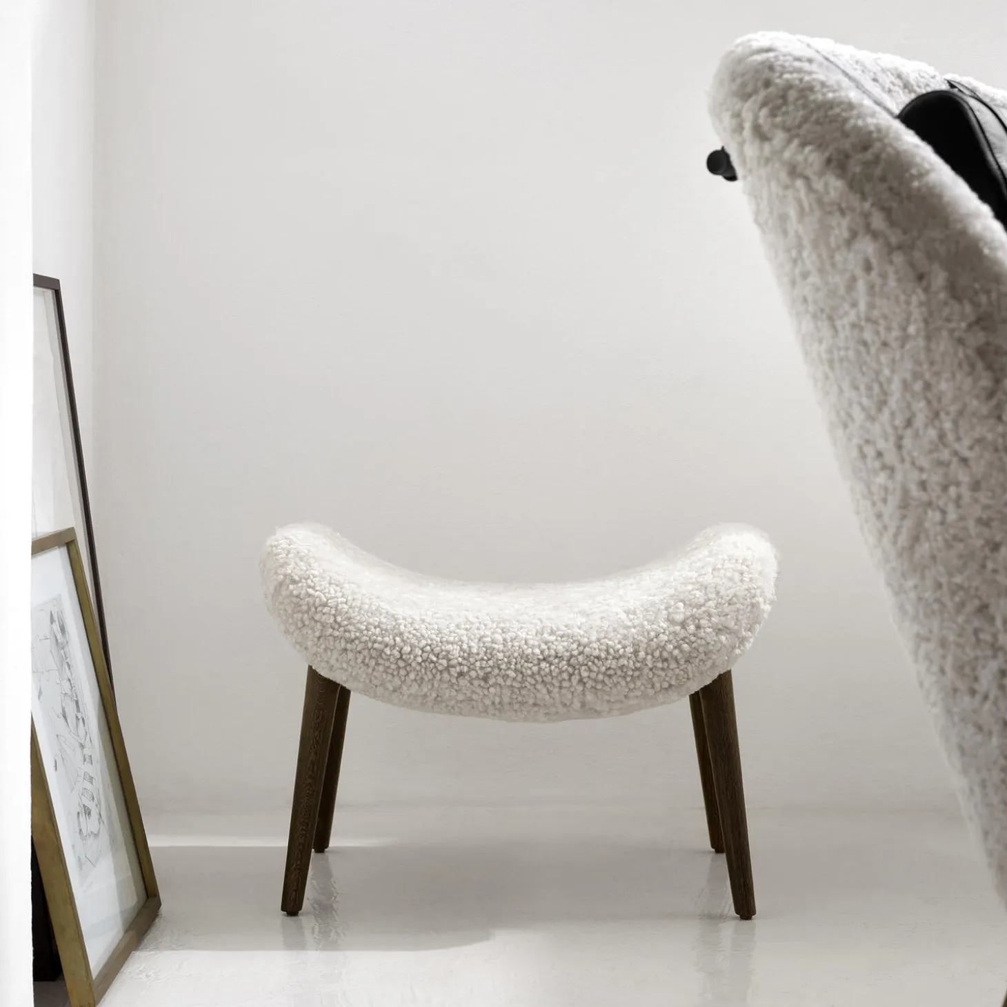 - Materiale: polstring i Curly 09 sheepskin og stel i lakeret mørk eg