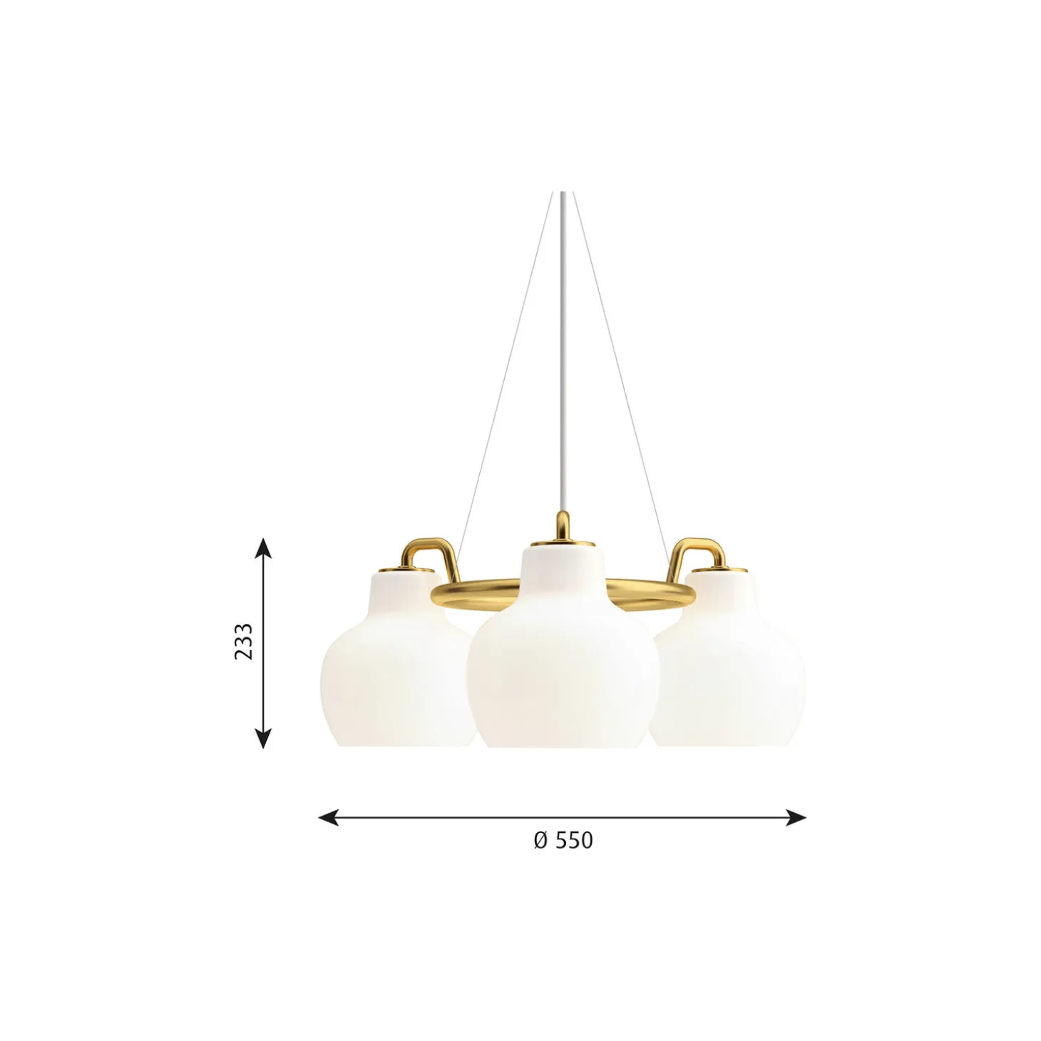 VL Ringkrone 3 i mundblæst trelags opalglas og ubehandlet børstet messing fra Louis Poulsen. Farve: opal. Mål: H: 23,3 x Ø 55 cm. Lyskilde: maks. 60W E27. Design: Vilhelm Lauritzen.