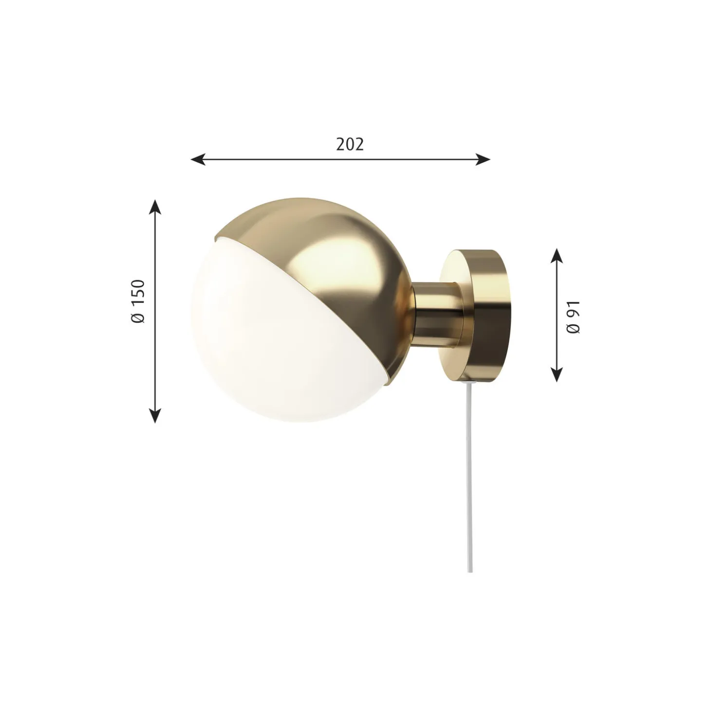 - Materiale: mundblæst blankt opalt trelagsglas med armaturhus i optrukket ubehandlet messing og bagdåse i smedet messing, der vil patinere