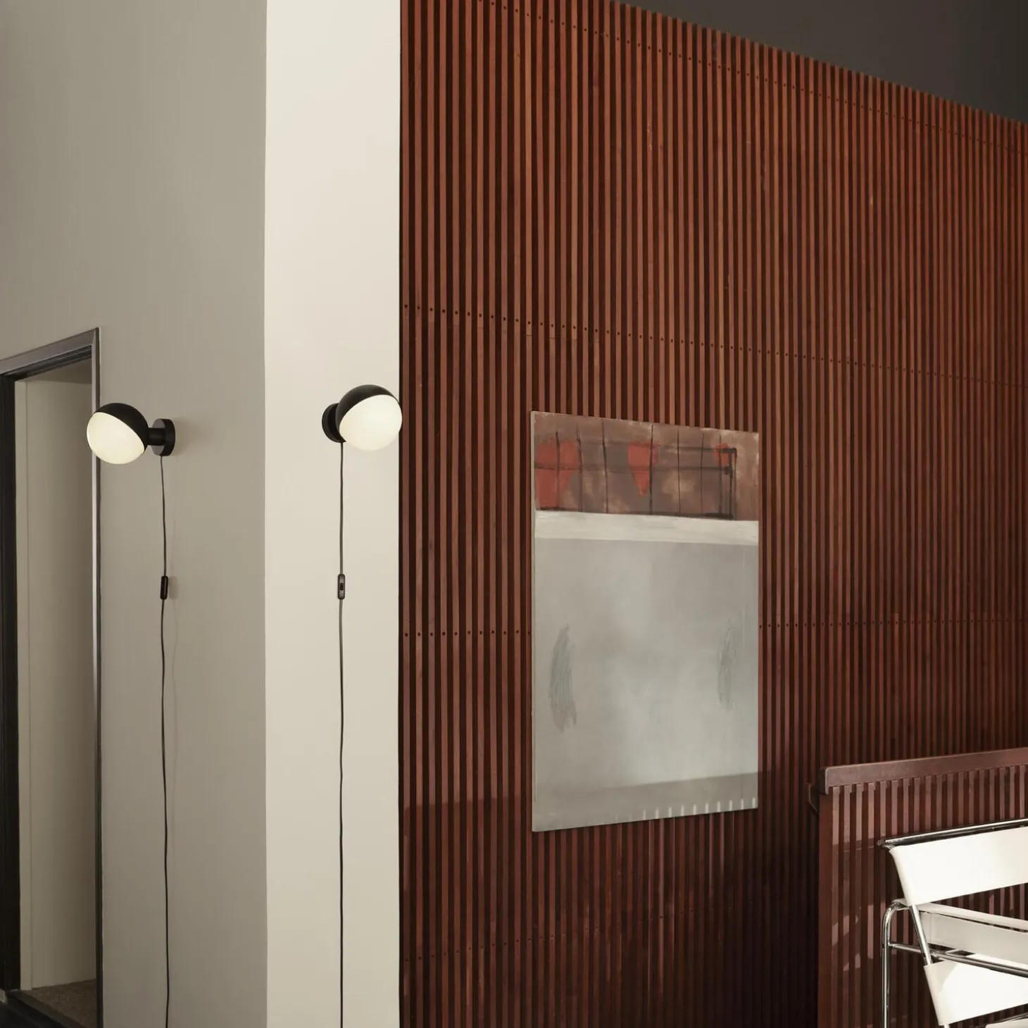 VL Studio væglampe i mundblæst blankt opalt trelagsglas med armaturhus i optrukket aluminium og bagdåse i støbt aluminium fra Louis Poulsen. Farve: sort. Mål: H: 15 x L: 20,1 x B: 15 cm. Lyskilde: G9. Design: Vilhelm Lauritzen. Armaturet udsender et blændfrit, diffust lys. Det opale trelagsglas giver en behagelig og ensartet belysning af området omkring armaturet. Lampeskærmen kan vippes 90 grader til højre eller venstre, hvilket giver mulighed for fleksibel lysfordeling.