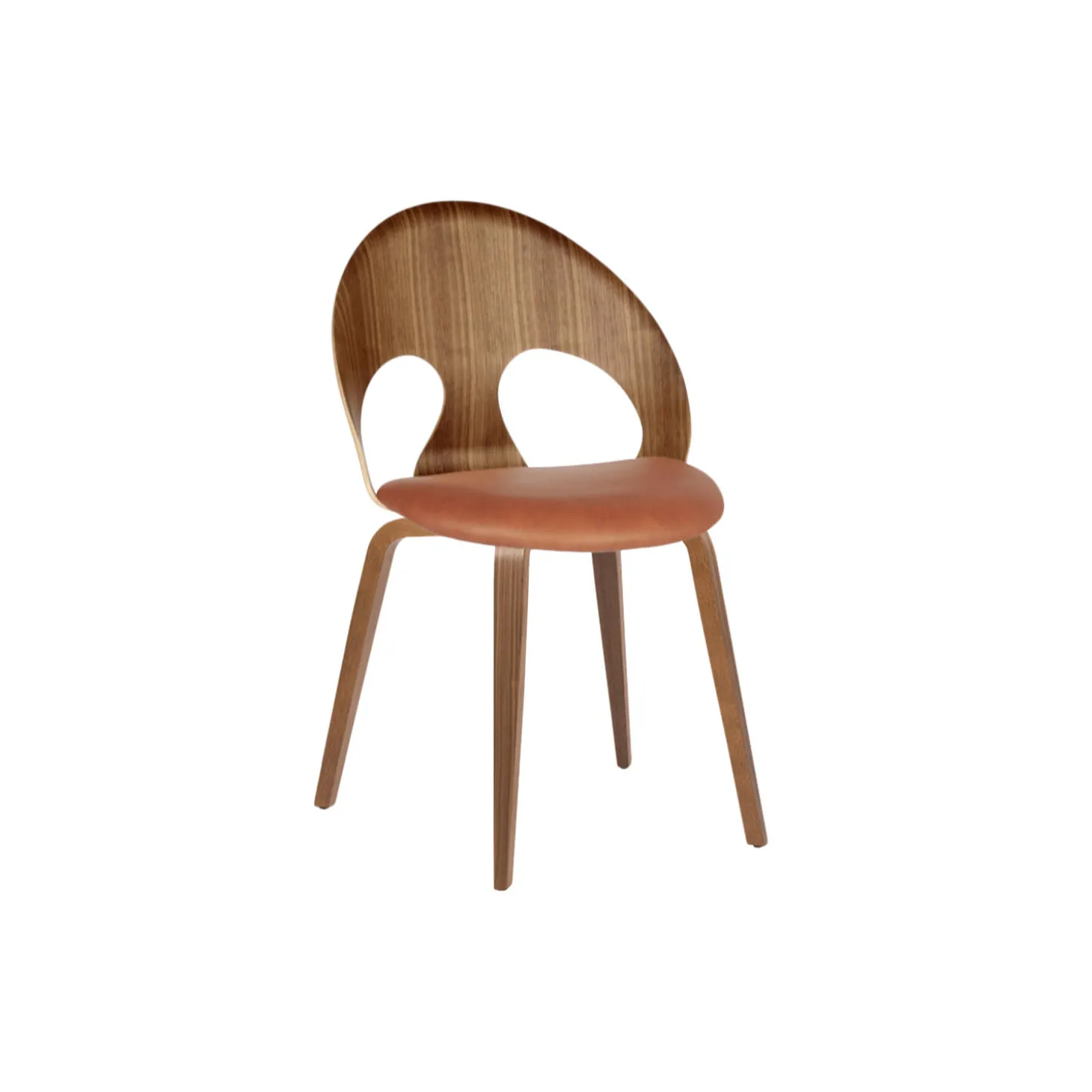 - Materiale: ryg og stel i valnød med sædepolstring i Ultra 41574 brandy læder af Sørensen Leather
