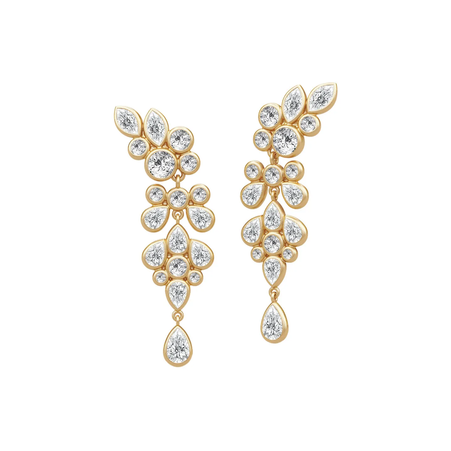 Denne enestående White Wisteria Chandelier består af et ekstraordinært og fortryllende design, som udstråler feminin elegance. Designet består af en kombination af round cut, pear cut og marquise cut cubiske zirkonia, der stråler til enhver lejlighed.