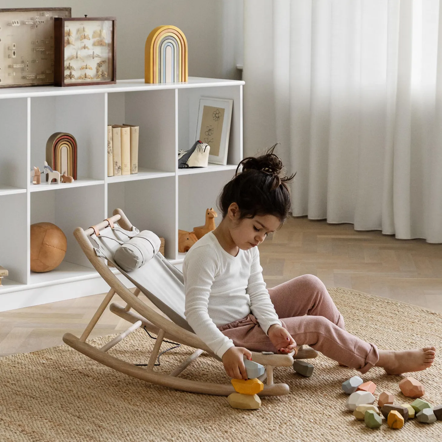 Wood junior vippestol er i sit smukke design og delikate forarbejdning, et stilfuldt bud på en stol til børneværelset. Småbørn op til 7 år / 25 kg år kan læse, slappe af og nyde hyggelige øjeblikke i vippestolen. Den lave vægt og det stabile design gør det nemt for børn at flytte vippestolen med derhen, hvor behovet for den er.Juniorsædet kan maskinvaskes ved 40°.Wood junior vippestol er udført med understel i massiv hvid-olieret eg og juniorsæde i Oeko-Tex bomuld med en nakkepude med Oeko-Tex fyld af genanvendt PET. Juniorsædet fastgøres til vippestolen ved hjælp af trykknapper og vippestolens læderremme. Juniorsædet kan maskinvaskes ved 40°.Vippestolen er som de øvrige møbler i Oliver Furnitures Wood Collection, kendetegnet ved sit klassiske nordiske formsprog. De rundede detaljer skaber en visuel lethed og et ubesværet udtryk i indretningen, ligesom stolens enkle, bløde formsprog virker appellerende og tryghedsskabende for det mindre barn.Wood junior vippestol er produceret i Europa og overholder de strenge EU-krav for sikkerhed og sundhed. Der er anvendt ikke-giftig olie til hvid-olieringen.
