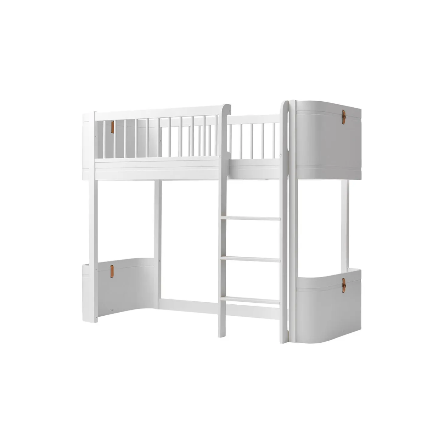 Wood Mini+ halvhøj seng i nyt nordisk design. Wood Mini+ er tidløs i udseende med runde bløde former, som giver sengen et indbydende og rart udtryk. Mini+ halvhøj seng er mindre i både bredde og længde end den klassiske halvhøje seng fra Wood Collection, og kan derfor også bruges på små børneværelser. Wood Mini+ har plads under selve sengen til f.eks. en hyggelig hule, som kan lukkes af ved tilkøb af et forhæng.Stigen kan kun placeres i højre side af sengen.Wood Mini+ hvid er fremstillet af massiv og formspændt birk.De ikke-synlige skruer giver sengen et rent og eksklusivt design og er særligt kendetegnende for Oliver Furniture. Stilen er skandinavisk med rene linjer, runde former og enkle detaljer, som læderrem i gavlen.Serien er produceret i Europa og overholder de strenge EU-krav for sikkerhed og sundhed. Produkterne er malet med ikke-giftig, vandbaseret maling.Bæreevne (statisk vægt):Mini+ tremmeseng: 30 kgMini+ juniorseng, halvhøj seng og halvhøj køjeseng: 120 kg