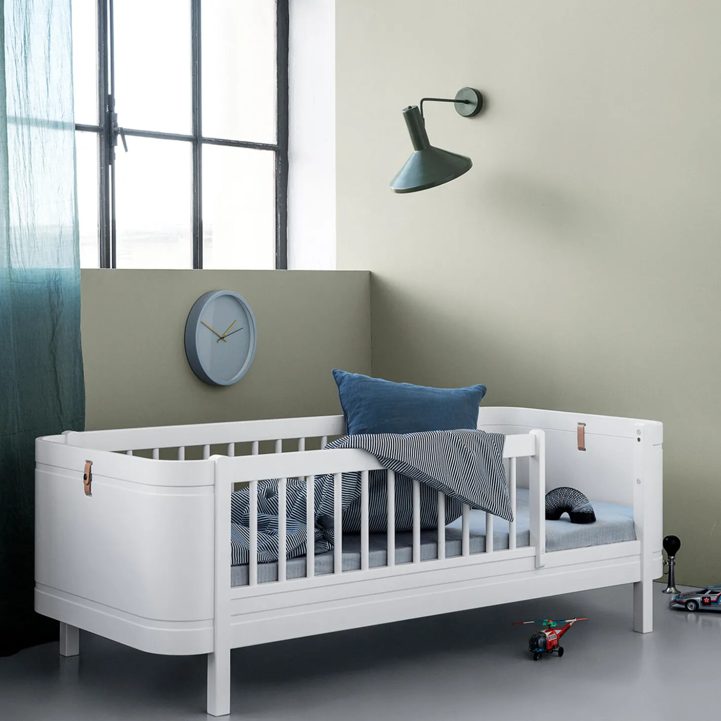 Mini+ juniorseng er designet til at imødekomme behovet for en optimal kvalitetsløsning til det mindre børneværelse. Med sine generøse sengemål, men lille statur, er Mini+ juniorsengen oplagt i det mindre børneværelse og ideel til at skabe en sikker, tryg og hyggelig base til det mindre barn. Mini+ juniorseng kan desuden udstyres med sengehest for øget sikkerhed.Med et enkelt ombygningskit kan Mini+ juniorsengen ændres til en Mini+ halvhøj seng, som skaber mulighed for et hyggeligt rum til leg og samvær med vennerne.Når barnet ultimativt vokser fra sengen, kan juniorsengen med smukke puder i ryggen nemt anvendes som hyggelig daybed et andet sted i hjemmet eller til det næste barn i familien.Herved understøtter Wood Mini+ juniorseng vores grundlæggende princip om æstetisk bæredygtighed: Vi skaber møbler, der i såvel design som kvalitet kan følge familien i generationer.Wood Mini+ hvid er fremstillet af massiv og formspændt birk.De ikke-synlige skruer giver sengen et rent og eksklusivt design og er særligt kendetegnende for Oliver Furniture. Stilen er skandinavisk med rene linjer, runde former og enkle detaljer, som læderrem i gavlen.Serien er produceret i Europa og overholder de strenge EU-krav for sikkerhed og sundhed. Produkterne er malet med ikke-giftig, vandbaseret maling.Bæreevne (statisk vægt):Mini+ tremmeseng: 30 kgMini+ juniorseng, halvhøj seng og halvhøj køjeseng: 120 kg