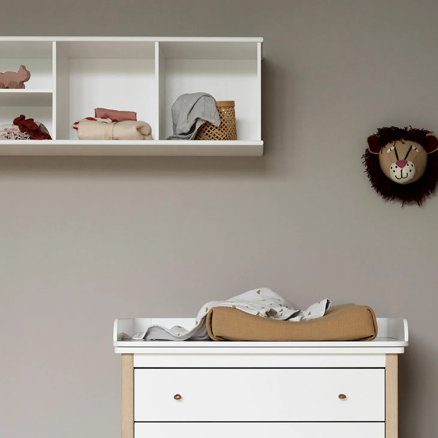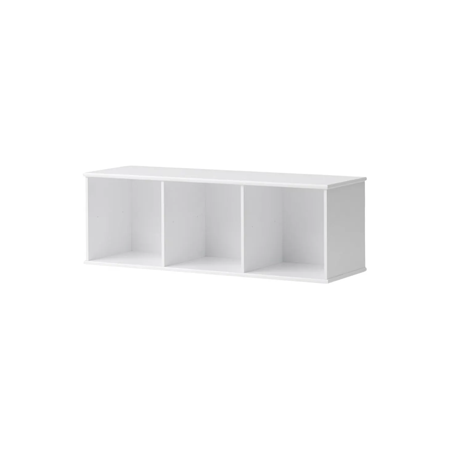 Wood reol 3×1 til ophæng. Klassisk reol med 3 rum i nordisk stilrent design. Denne reol passer nemt ind i alle hjemmets indretninger. Den er ideel til børneværelset, og egner sig også godt til resten af hjemmet såsom i stuen, soveværelset eller i entréen. Køb tilhørende kasser til opbevaring eller ekstra hylder. Opbevaringskasserne har lædergreb og en side i nordisk eg, du vælger derfor selv hvilken side på kassen der skal vende ud mod rummet.Wood reol kan også bestilles med sokkel som gulvreol. Bestilles reolen med sokkel kan den desuden bruges som bænk til at sidde på. Tilhørende hynde kan bestilles separat.Wood reoler er fremstillet i MDF, der er konstrueret træ, der består af 60% birk, 20% fyrretræ og 20% asp træ. MDF er meget stærkt og holdbart.De ikke-synlige skruer giver reolen et rent og eksklusivt design og er særligt kendetegnende for Oliver Furniture. Stilen er skandinavisk med rene linjer og fine detaljer.Reolen er produceret i Europa og overholder de strenge EU-krav for sikkerhed og sundhed. Reolen er malet med ikke-giftig, vandbaseret maling.