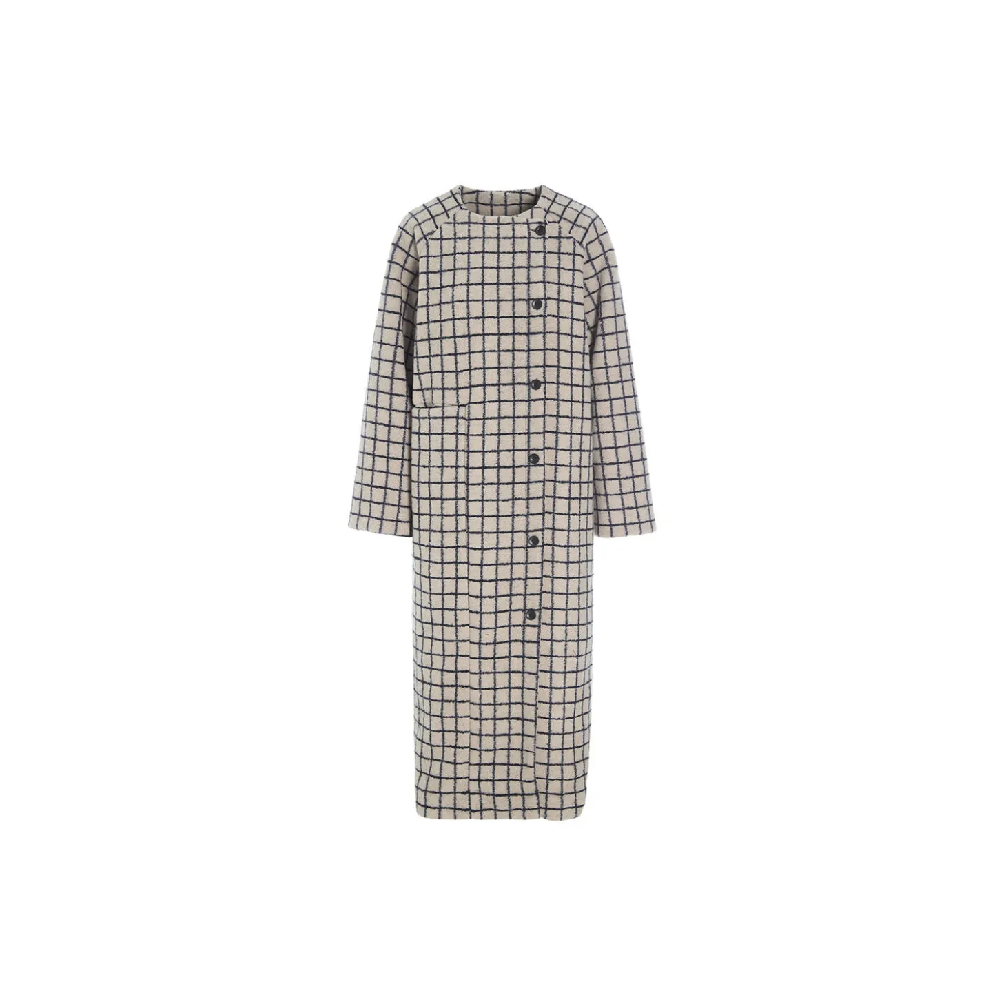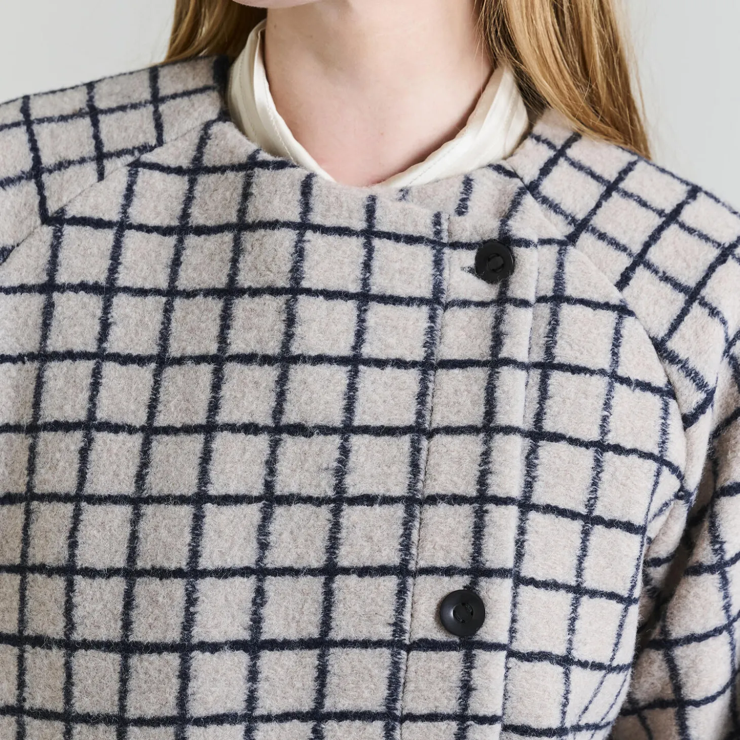 Enkelt design, når det er bedst. Denne smukke, lange frakke i en lækker ternet uldkvalitet er helt minimalistisk i snittet, og det er netop det, som gør frakken så elegant. En tidløs klassiker, der altid vil være relevant. Jakken er foeret.
