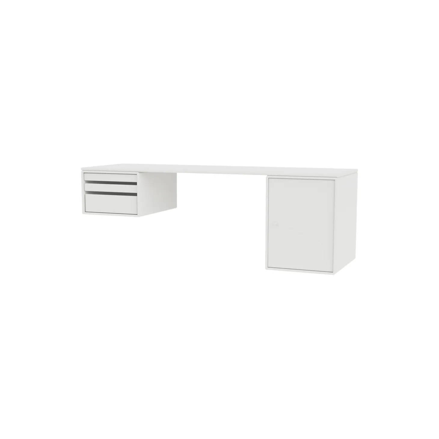 WORKSHOP er et aflangt skrivebord til hjemmekontoret med benplads mellem de to opbevaringmoduler under toppladen i siderne. WORKSHOP har bakkemoduler i den ene side, som kan tages helt ud af modulet. I den anden side et lille skab til opbevaring af eksempeltvis mapper eller bøger.