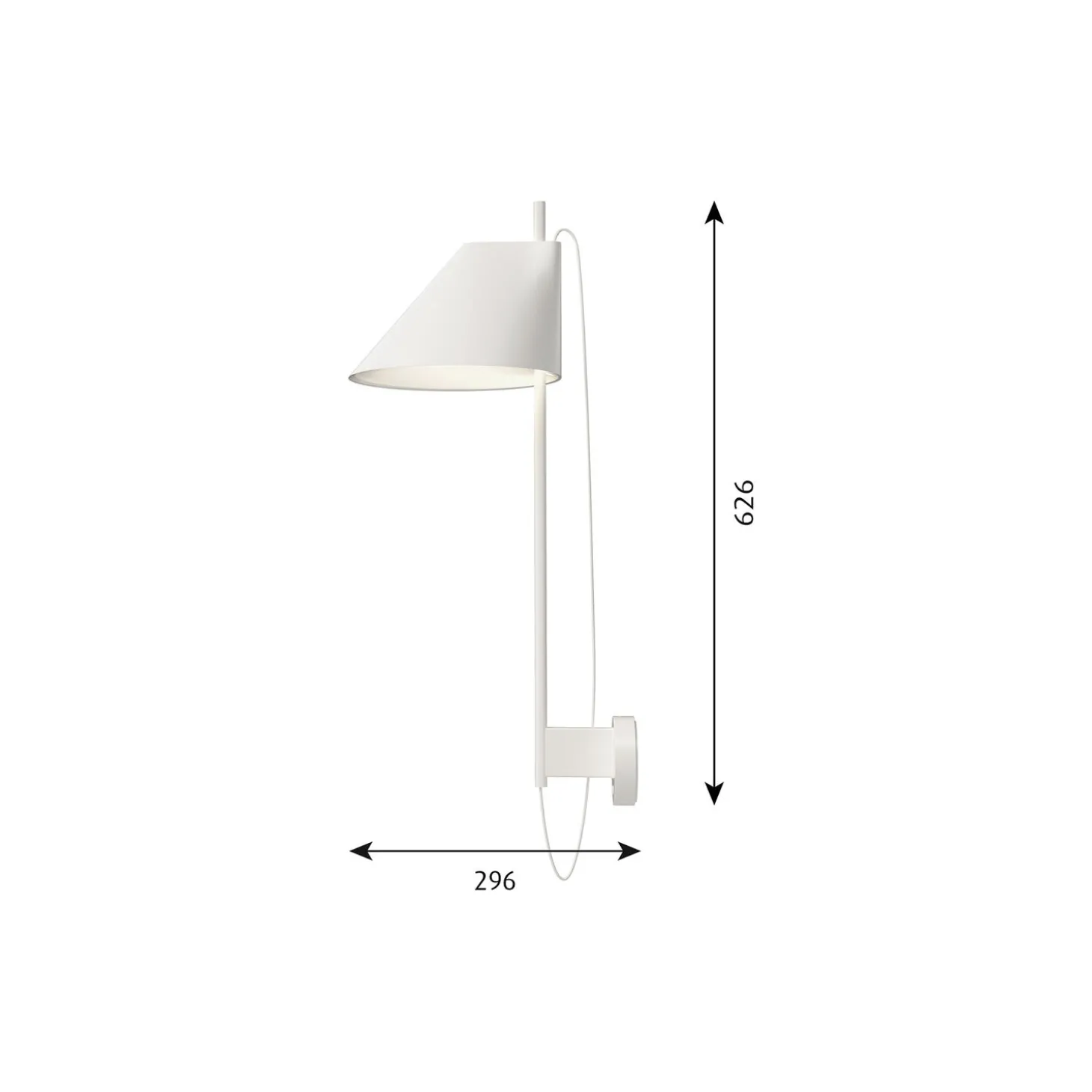 Yuh væglampe i vådlakeret aluminium med arm i ekstruderet messing fra Louis Poulsen. Farve: hvid. Mål: H: 62,6 x D: 29,6 cm. Lyskilde: LED 2700K 10W. Design: GamFratesi.