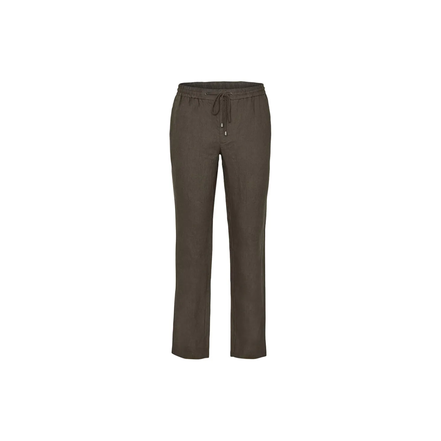 Modern fit string trousers with elasticated drawstring waistband. Two front pockets
