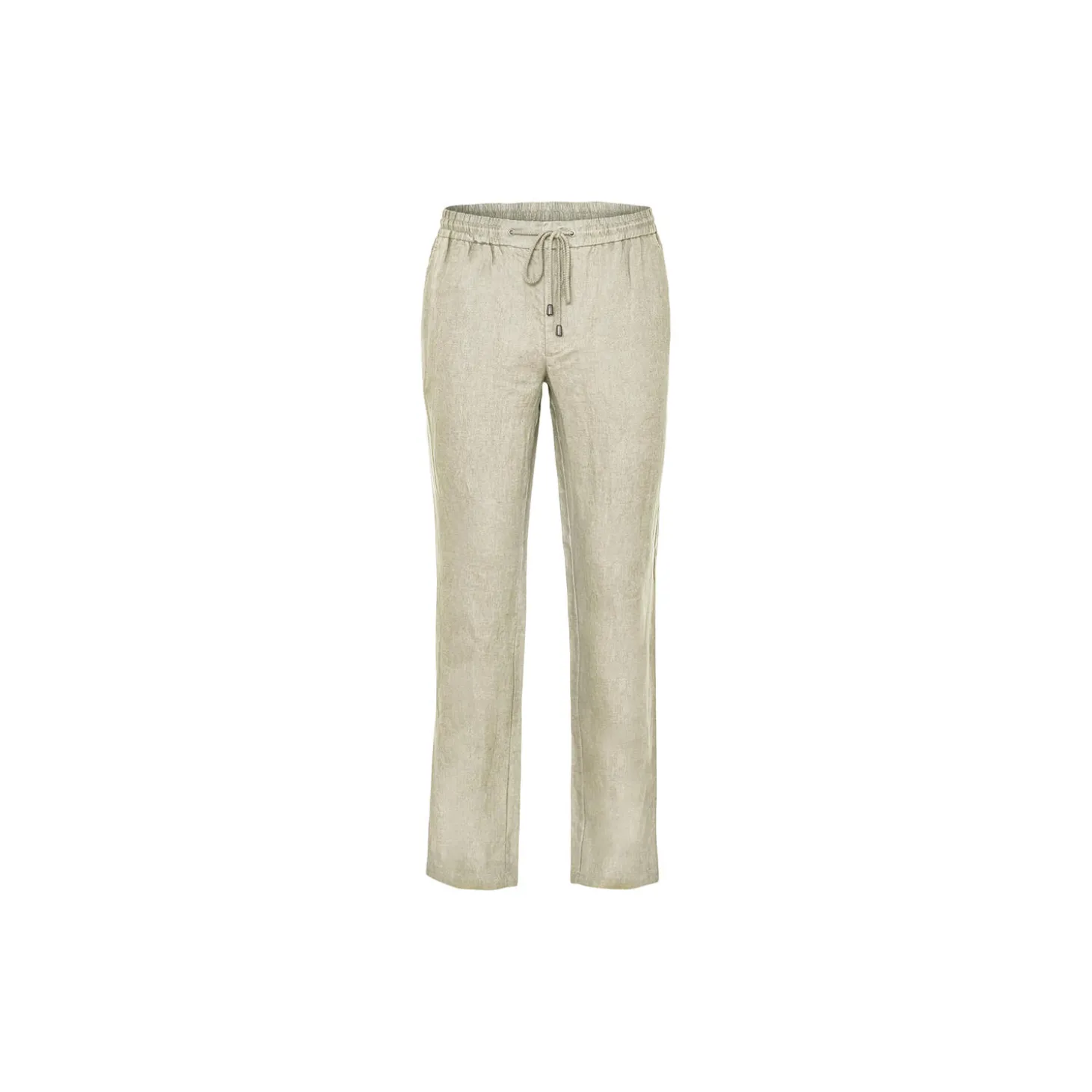 Modern fit string trousers with elasticated drawstring waistband. Two front pockets