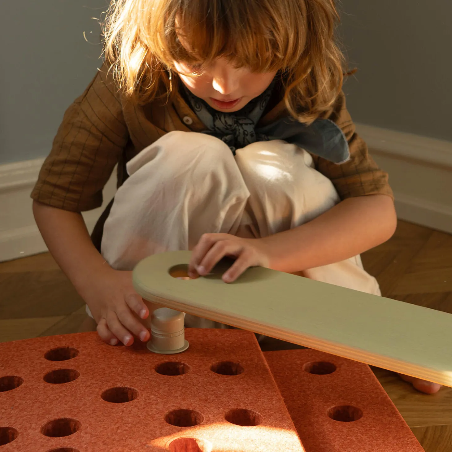 Disse balancebomme introducerer spændende nye udfordringer til dine MODU-kreationer. Ideel til at konstruere balancebaner, broer, hylder eller bænke, de udvider din MODU-verden med nye muligheder for at bygge, balancere og udforske! – Tilføj nye balancemuligheder til din samling- Byg forhindringsbaner, huler, nyt legetøj og mere- FSC-certificeret birketræ, bejdset i naturlig linolieAntal dele: 2 stkAlder: 3 – 8 årVægtgrænse: Maks. 80 kgMål: 70 x 10 x 1,4 cmPleje: Rengør med fugtig kludMaterialer: FSC-certificeret birketræ, bejdset i naturlig linolieProduktion: Fremstillet i Bosnien