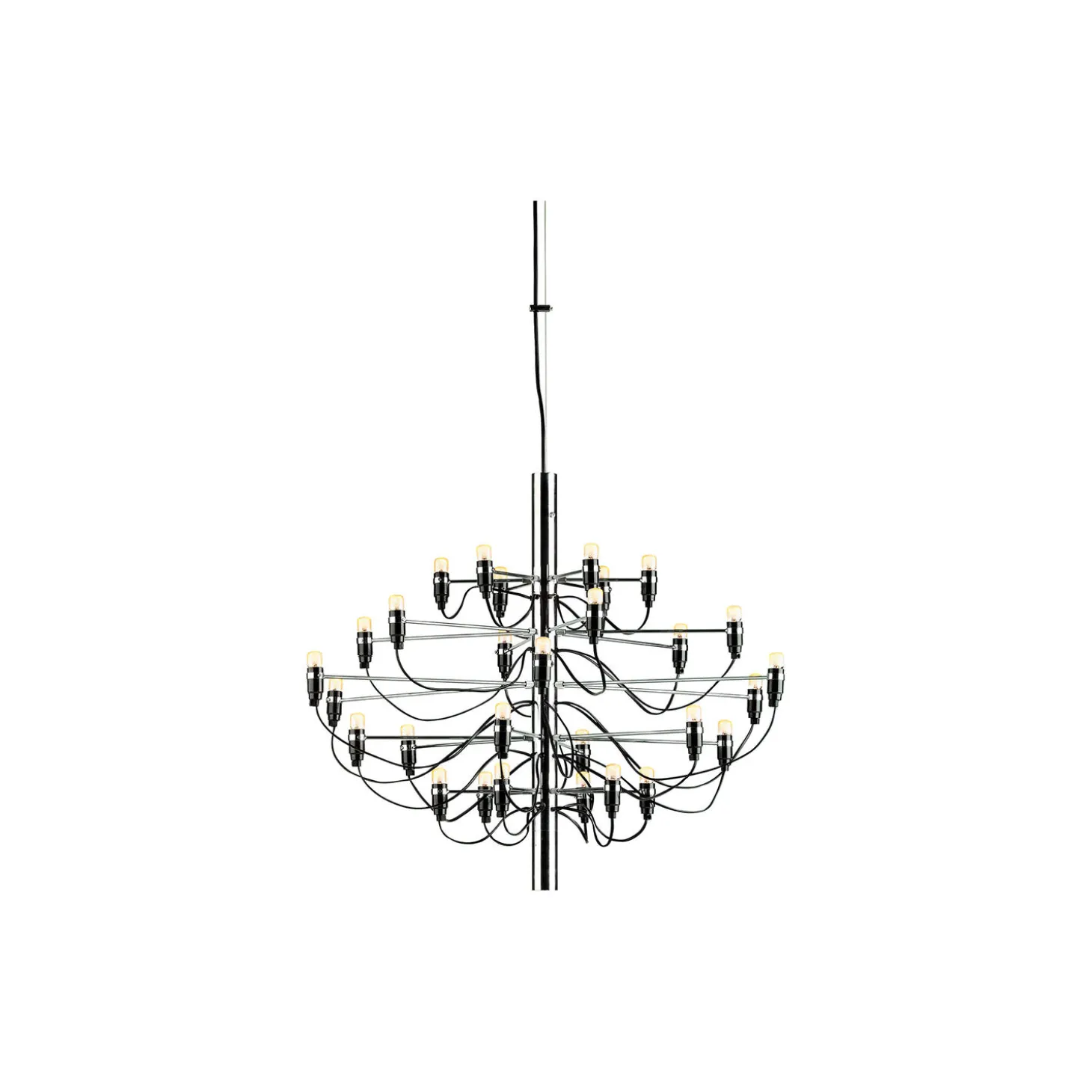 2097/30 lysekrone i krombelagt stål fra Flos. Farve: krom. Mål: H: 72 x Ø 88 cm. Design: Gino Sarfatti.
