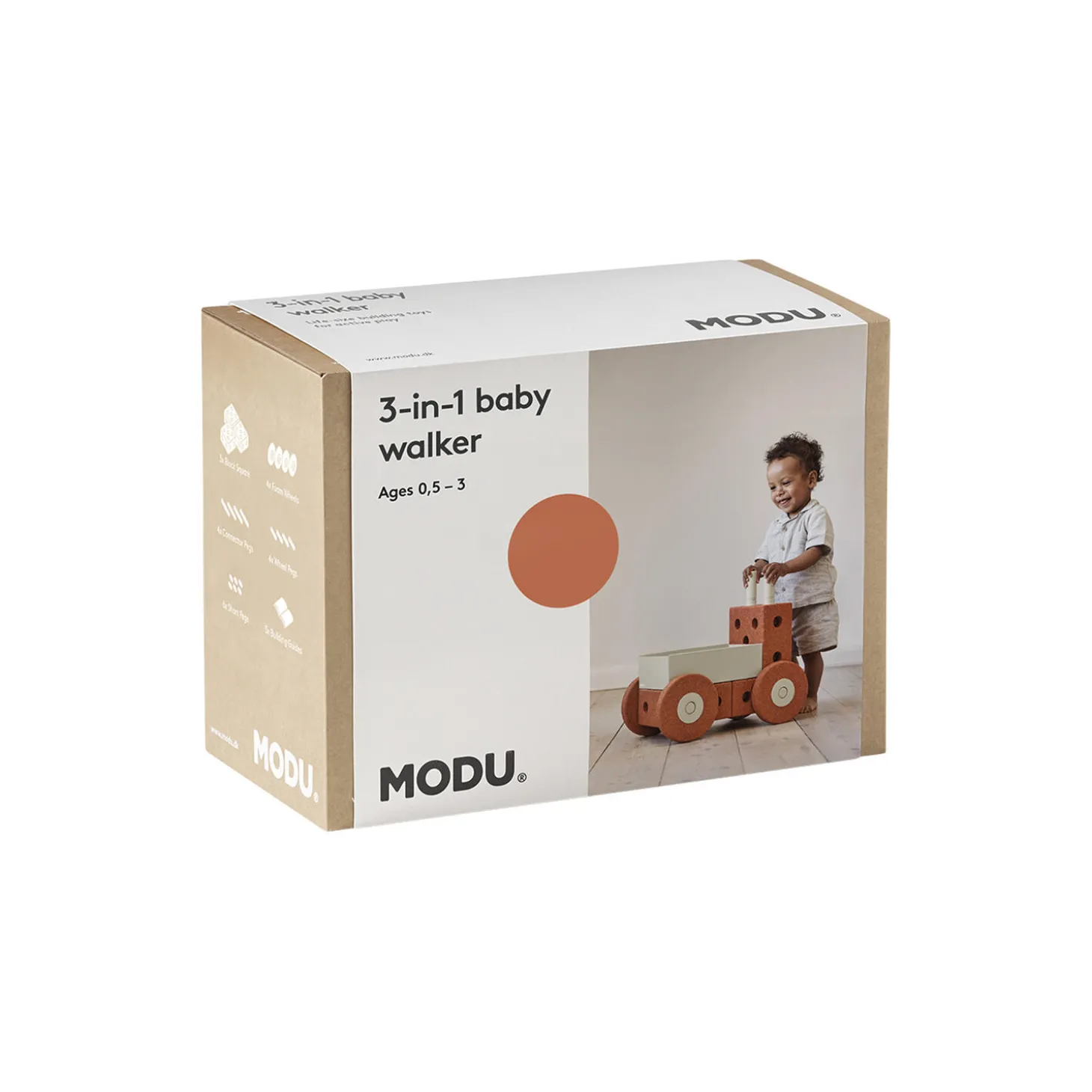 MODUs 3-i-1 Gåvogn understøtter din babys udvikling på dens færd frem i verden og er fyldt med sjove og smarte funktioner. Byg gåvognen om til en trillebør eller en lille skammel, når dit barn er parat til at tage de første par skridt eller sidde selv. Den rummelige kasse fungerer både som opbevaring og et lille lad til dit barns yndlingslegetøj. De store hjul giver gåvognen god støtte, og det lette materiale gør det nemt at flytte den rundt.