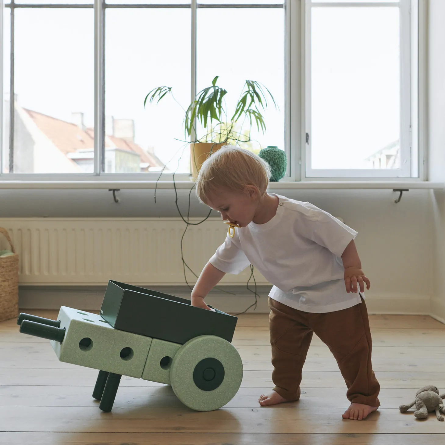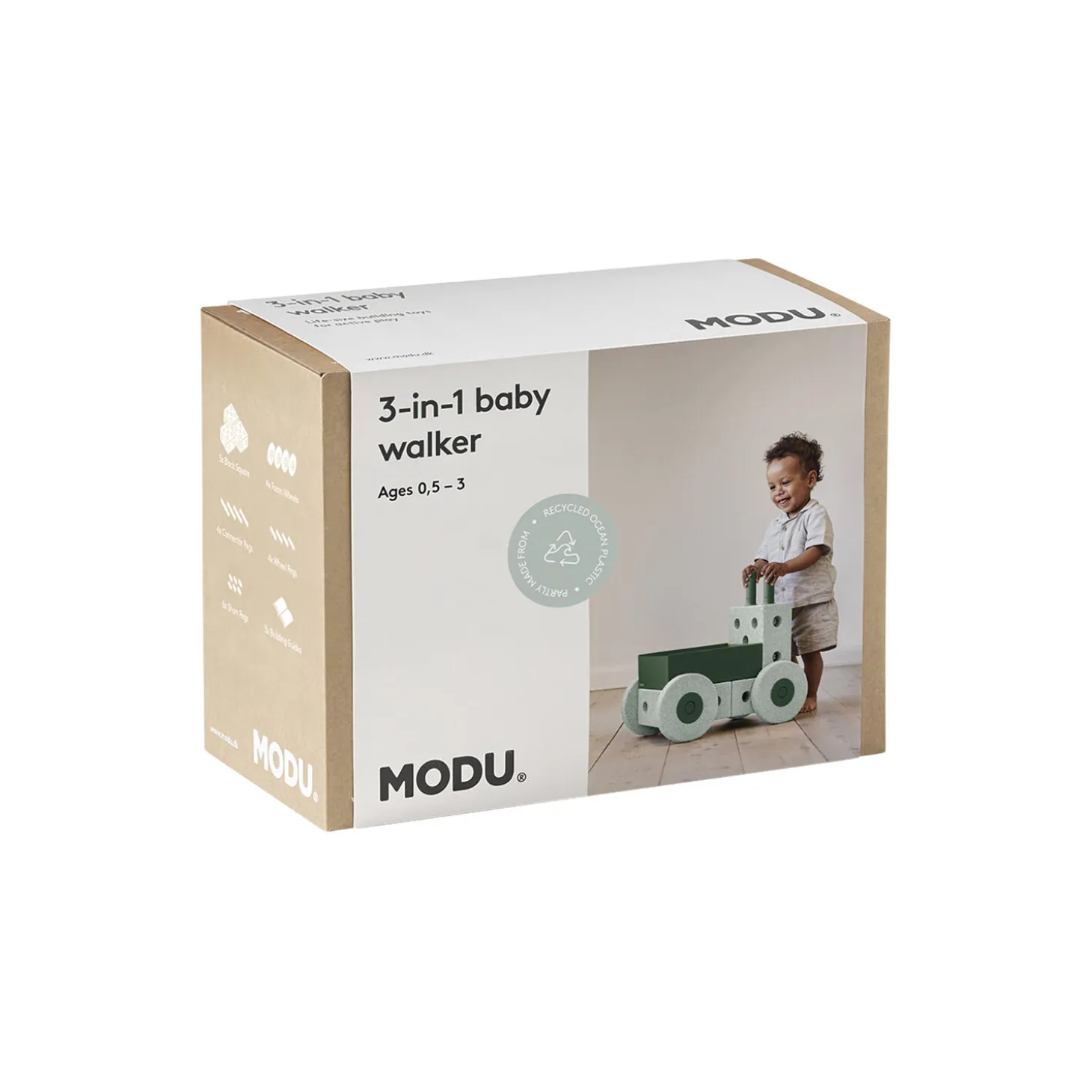 MODUs 3-i-1 Gåvogn understøtter din babys udvikling på dens færd frem i verden og er fyldt med sjove og smarte funktioner. Byg gåvognen om til en trillebør eller en lille skammel, når dit barn er parat til at tage de første par skridt eller sidde selv. Den rummelige kasse fungerer både som opbevaring og et lille lad til dit barns yndlingslegetøj. De store hjul giver gåvognen god støtte, og det lette materiale gør det nemt at flytte den rundt.