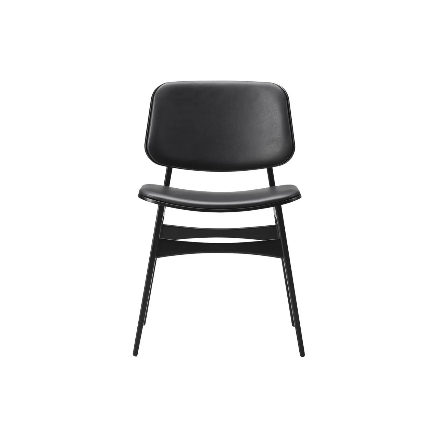3052 Søborg spisebordsstol i sortlakeret eg med sæde- og rygpolstring i natur anilinlæder 98 fra Fredericia. Farve: sort eg/sort. Mål: H: 80 x B: 51 x D: 48,5 cm. Siddehøjde: 46,5 cm. Design: Børge Mogensen.