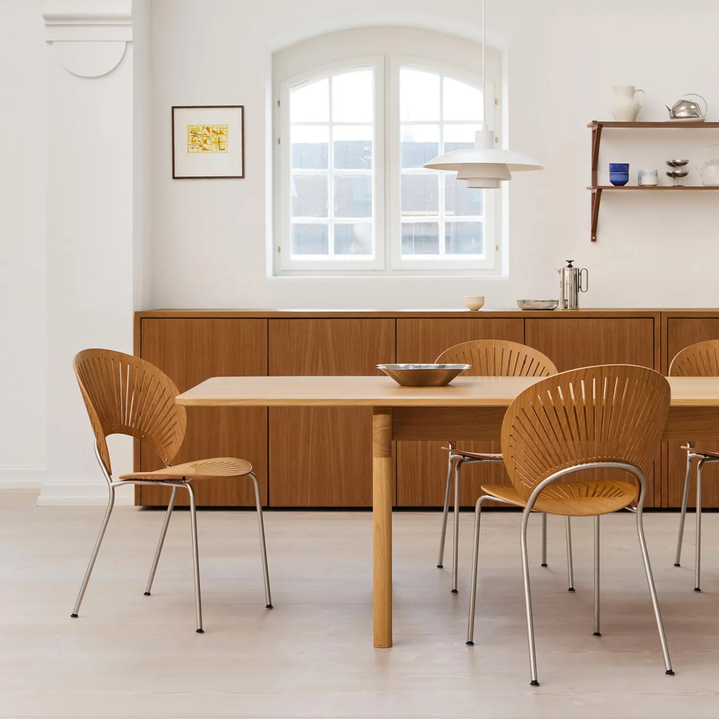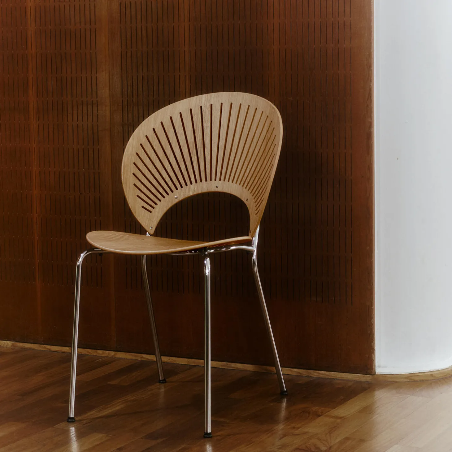 Nanna Ditzels ikoniske skalstol Trinidad er designet i 1993 og er ægte klassiker i dansk møbeldesign. Stolens yndefulde lethed understreges af de udskårne riller, der danner et samspil mellem lys og skygger i rummet og giver stolen en følelse af bevægelse. Rillerne i stolen ventilerer samtidig kroppen, og det er sammen med de omfavnende sædeskaller med til at gøre Trinidad-stolen yderst komfortabel.