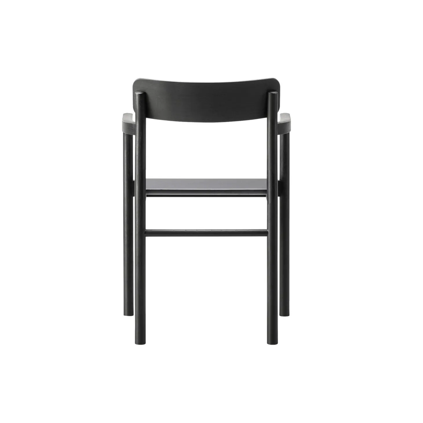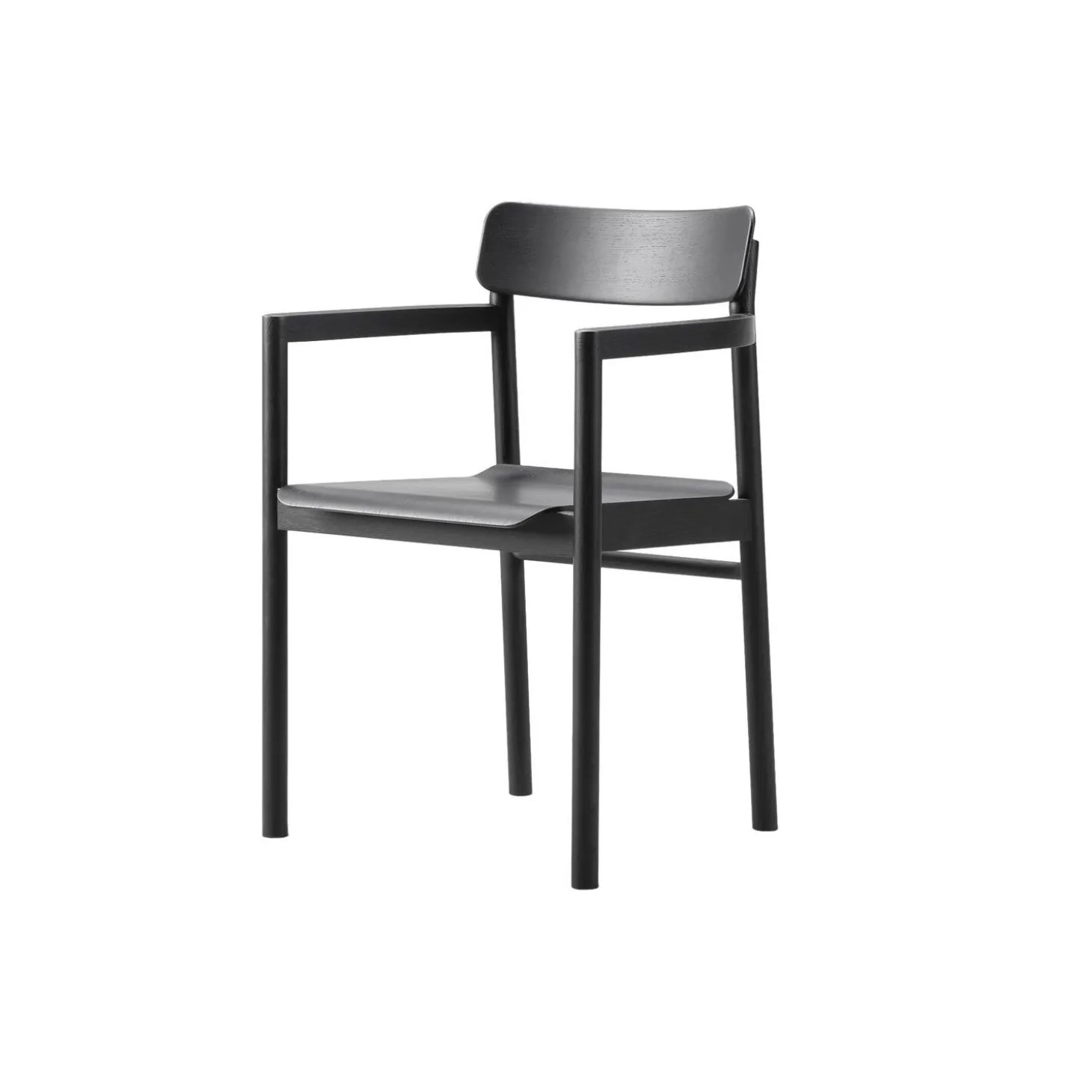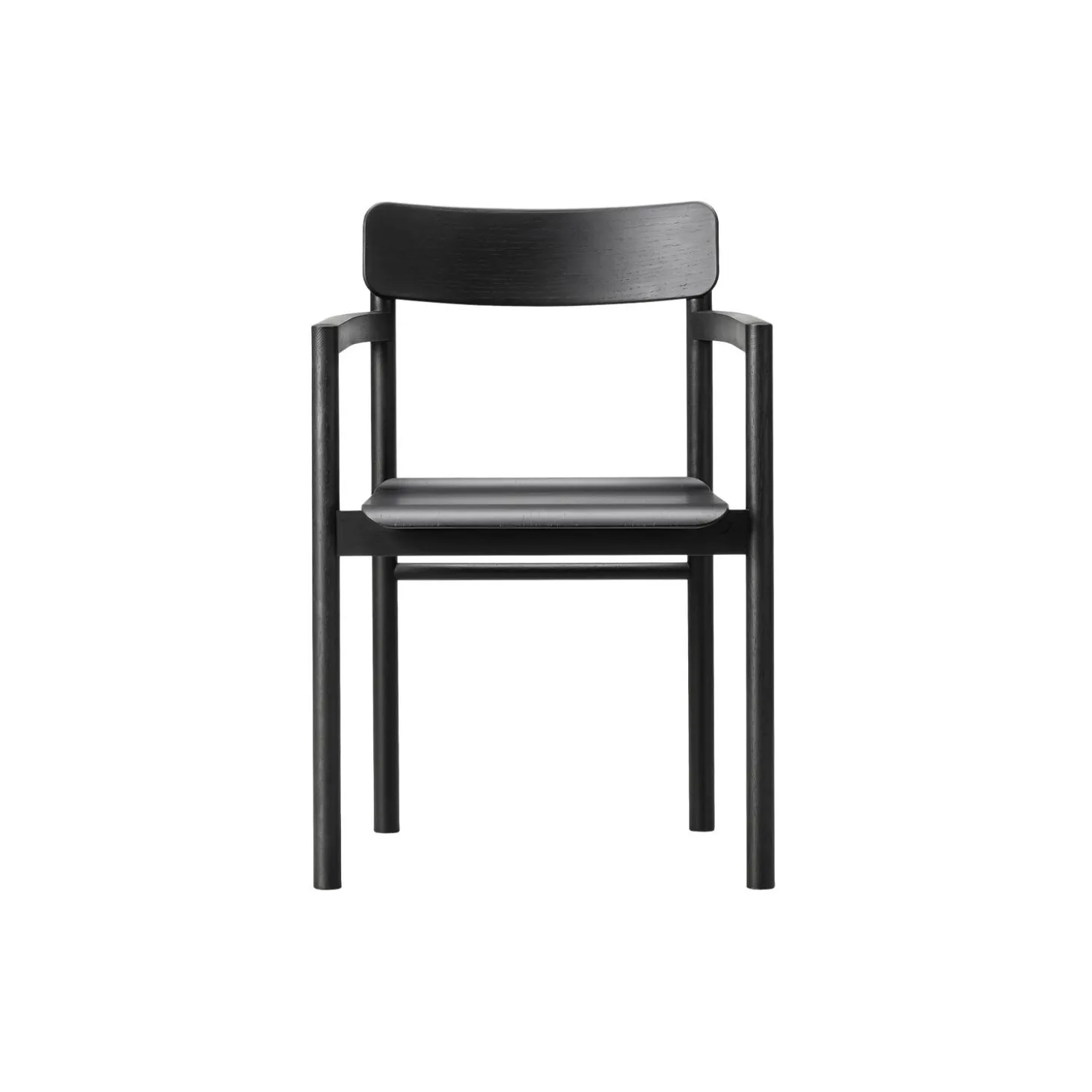 Post spisebordsstol med armlæn i sortlakeret eg fra Fredericia. Farve: sortlakeret eg. Mål: H: 79,5 x B: 54 x D: 49,5 cm. Siddehøjde: 46,5 cm. Design: Cecilie Manz.