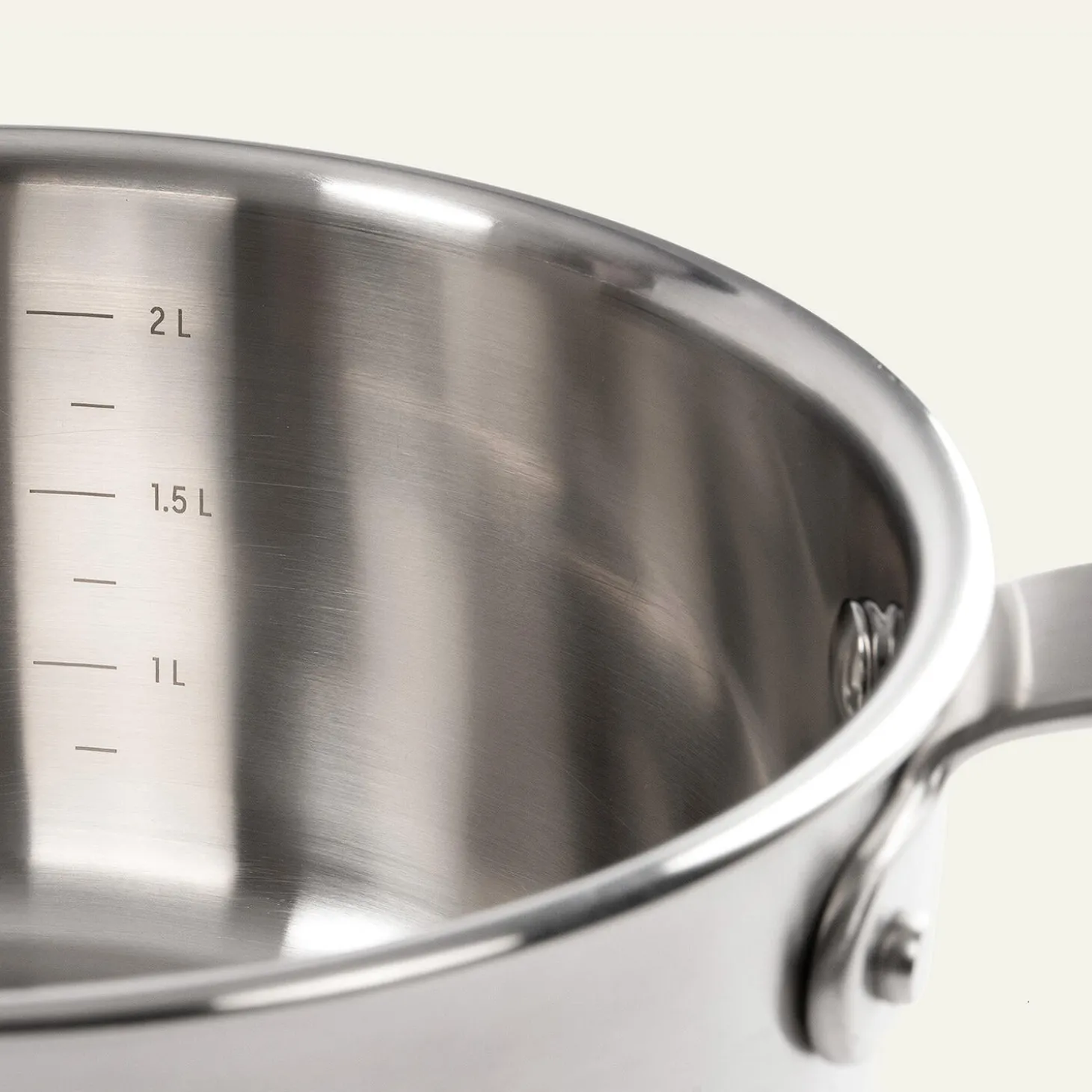 Kasserolle i 5-lags konstruktion produceret i Italien. Kan gå i ovn op til 430 grader. Optimeret til induktion. Virker på alle varmekilder.