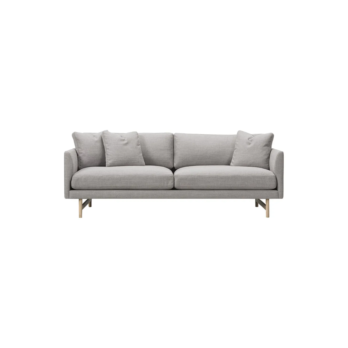 5552 Calmo 95 2 pers. sofa med polstring i Sunniva 717 tekstil af Kvadrat og stel i lakeret eg fra Fredericia. Farve: beige/lakeret eg. Mål: H: 75,5 x L: 200 x D: 90 cm. Siddehøjde: 41 cm. Design: Hugo Passos.