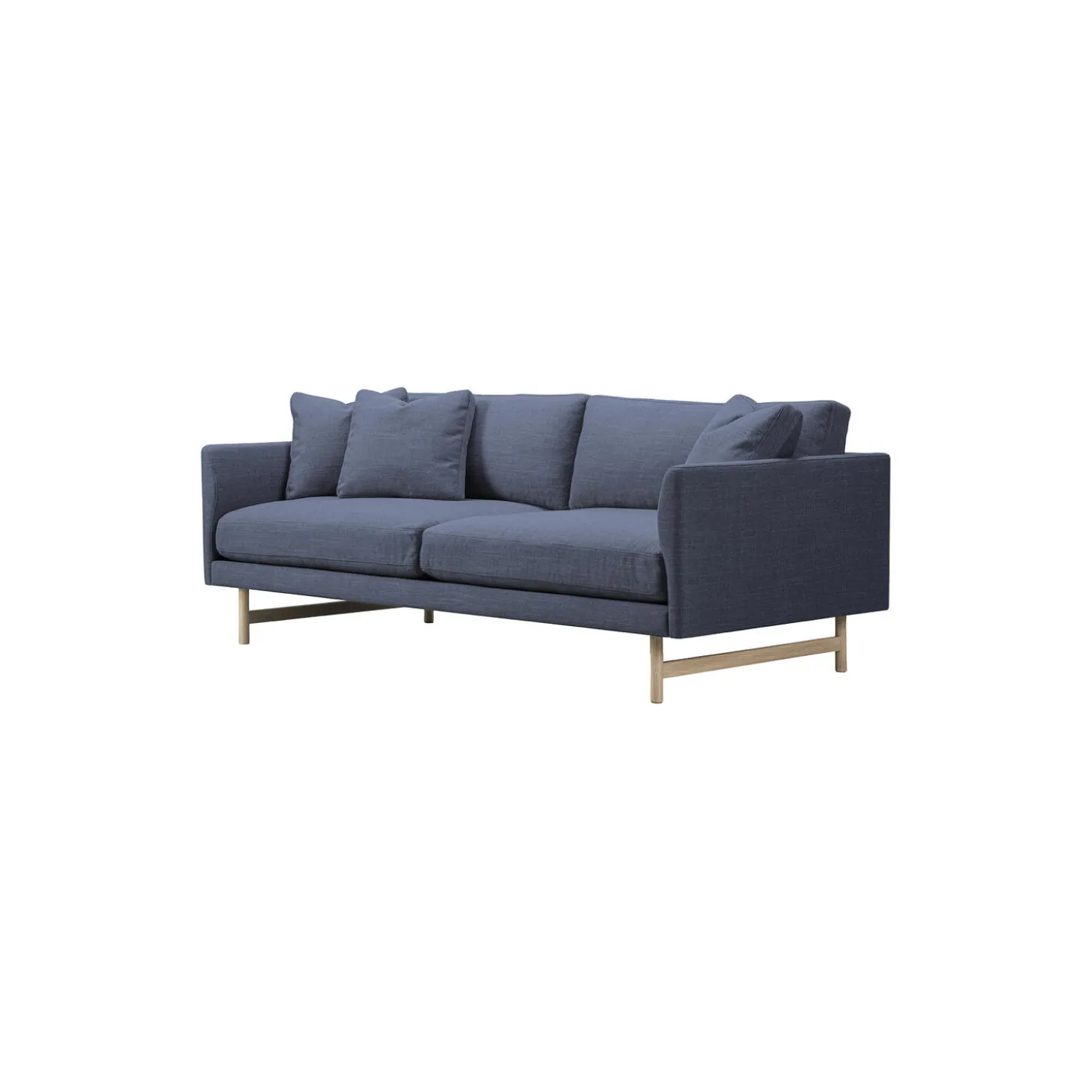 5552 Calmo 95 2 pers. sofa med polstring i Sunniva 783 tekstil af Kvadrat og stel i lakeret eg fra Fredericia. Farve: mørkeblå/lakeret eg. Mål: H: 75,5 x L: 200 x D: 90 cm. Siddehøjde: 41 cm. Design: Hugo Passos.