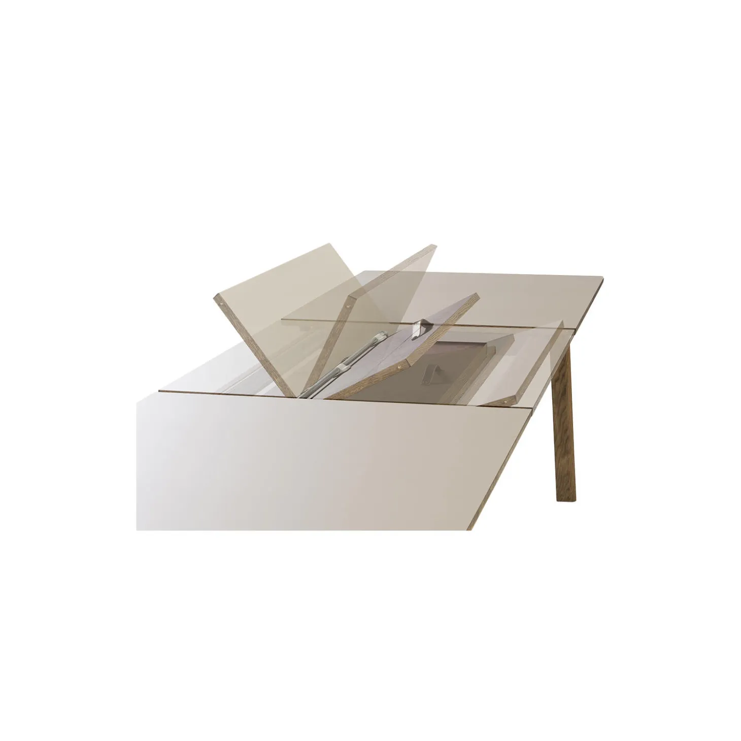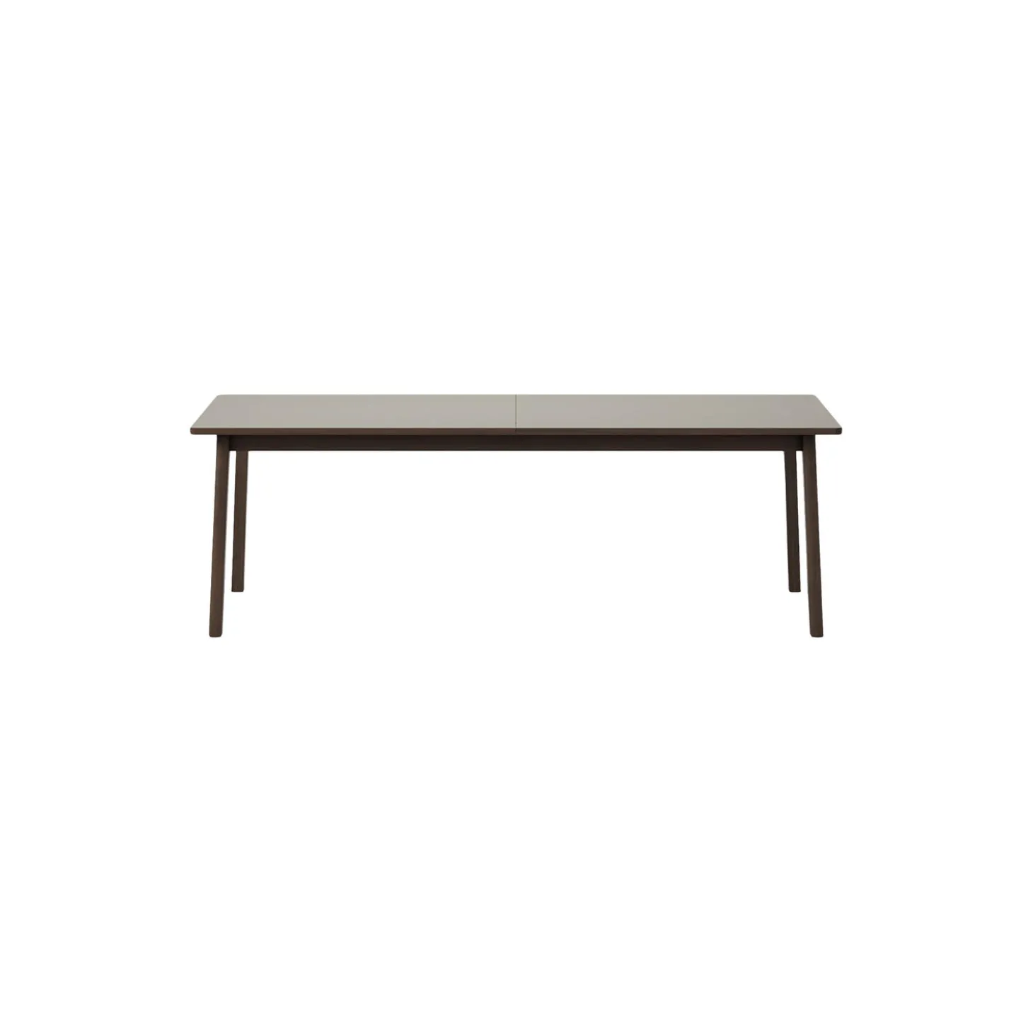 6490 Ana udtræksspisebord 220 cm med bordplade i Fenix-laminat, kanter og stel i røget eg fra Fredericia. Farve: almond/smoked oak. Mål: H: 73 x L: 220-320 x B: 95 cm. Design: Arde.