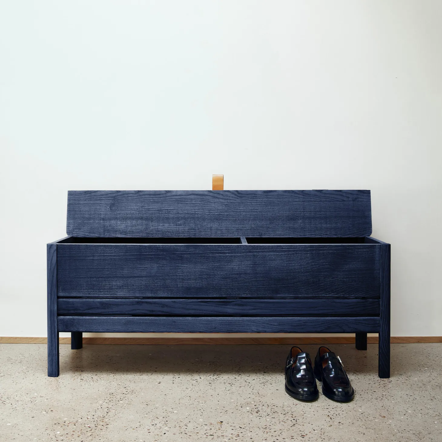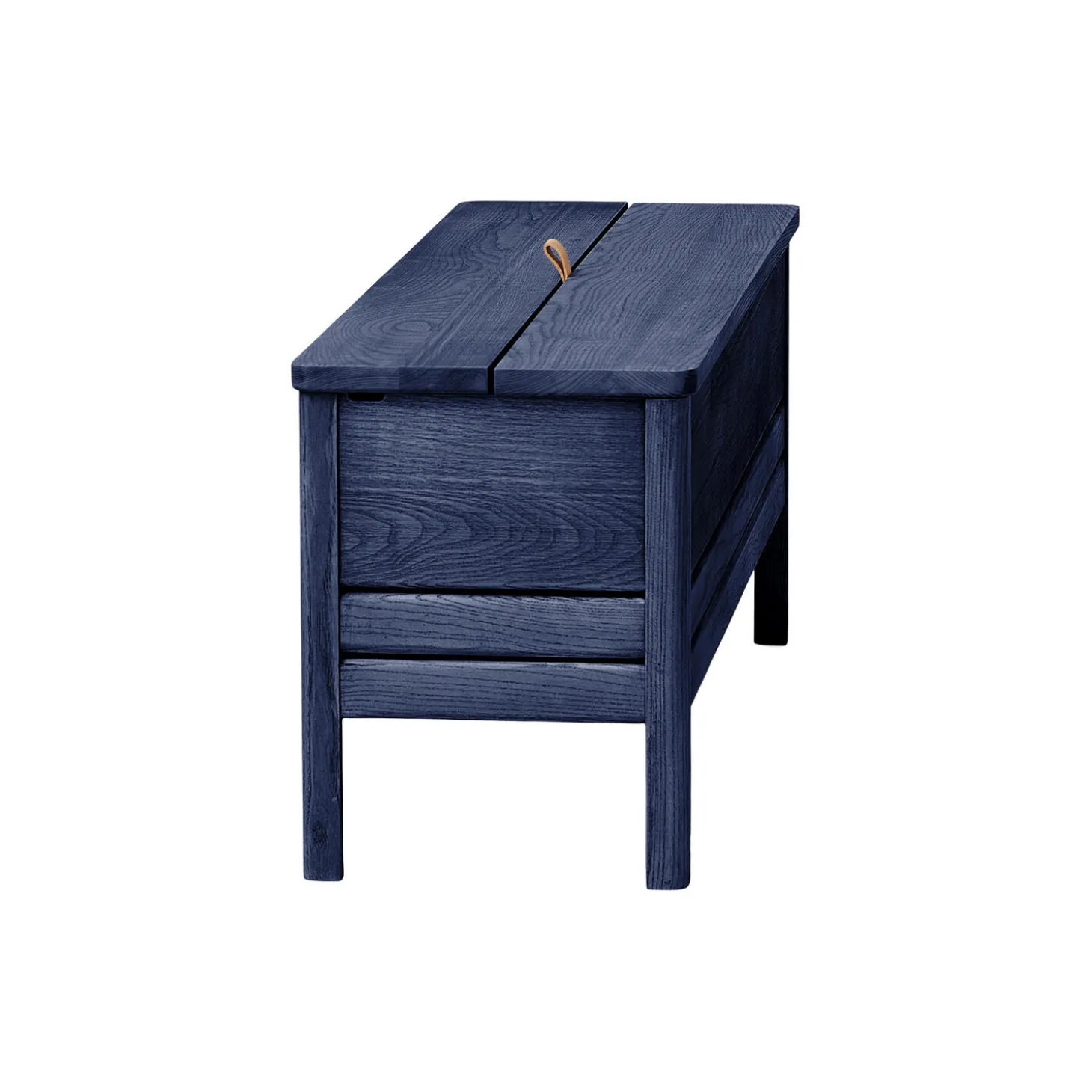 A line Storage Bench 111 er fremstillet i en dybblå farve med satinfinish, som fremhæver asketræets farve og åretegning. Som beskyttelse mod ridser og udsving i luftfugtighed er træet efter behandlet med linolie, et miljøvenligt produkt fremstillet af frøene fra hørplanten. Den linolie, der er anvendt til bænken, er udviklet i partnerkab med Rubio Monocoat.