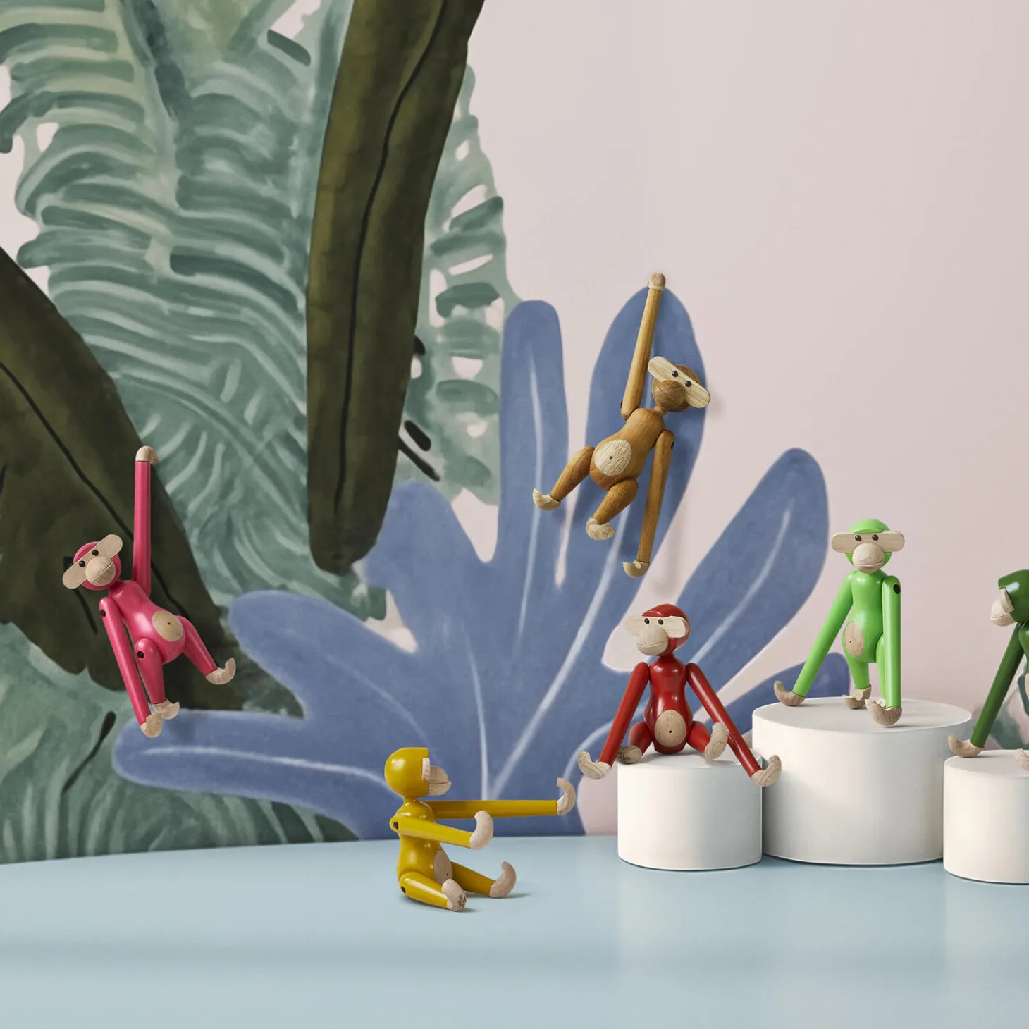 En både nostalgisk og nyskabende humørspreder. Kay Bojesens Abe har altid haft en farverig personlighed, og med den ikoniske miniabe i bøgetræ i nye og mere farverige klæder bygger vi ydmygt og med et glimt i øjet videre på Kay Bojesens designarv og skaber nye originale fortællinger i træ. Miniaben i pink emmer af livsglæde og fremstår i et flot trendy look, hvor den intense farve står smukt til bøgetræets kølige udtryk og er med til at fremhæve skønheden i træet. Den pink farve omfavner en higen efter glæde, der med en naturlig lethed sender tankerne en tur ned gennem frugttræernes nyudsprungne blomsterknopper eller ned i den saftigste skål sommerhindbær. Aben måler 9,5 cm i højden og er fremstillet i FSC®-certificeret bøgetræ, der træder frem på hænder og fødder, ansigt og mave og giver miniaben i bøgetræ et lidt kækt og ungdommeligt præg. Brugen af farver gør Aben perfekt som et legende element i en moderne indretning, hvor den vil skabe smil og stil med sin finurlige fremtoning og sit farverige udseende – uanset hvor den flytter ind. De farvede miniaber er et æstetisk statement, der minimalistisk og elegant fremhæver Abens runde former og understreger Kay Bojesens grafiske og enkle design. Med miniaben i et væld af farver hyldes originalt dansk design i et nyt og sprudlende udtryk med stemningsfremmende farver, legende farvekombinationer og smukt håndværk.