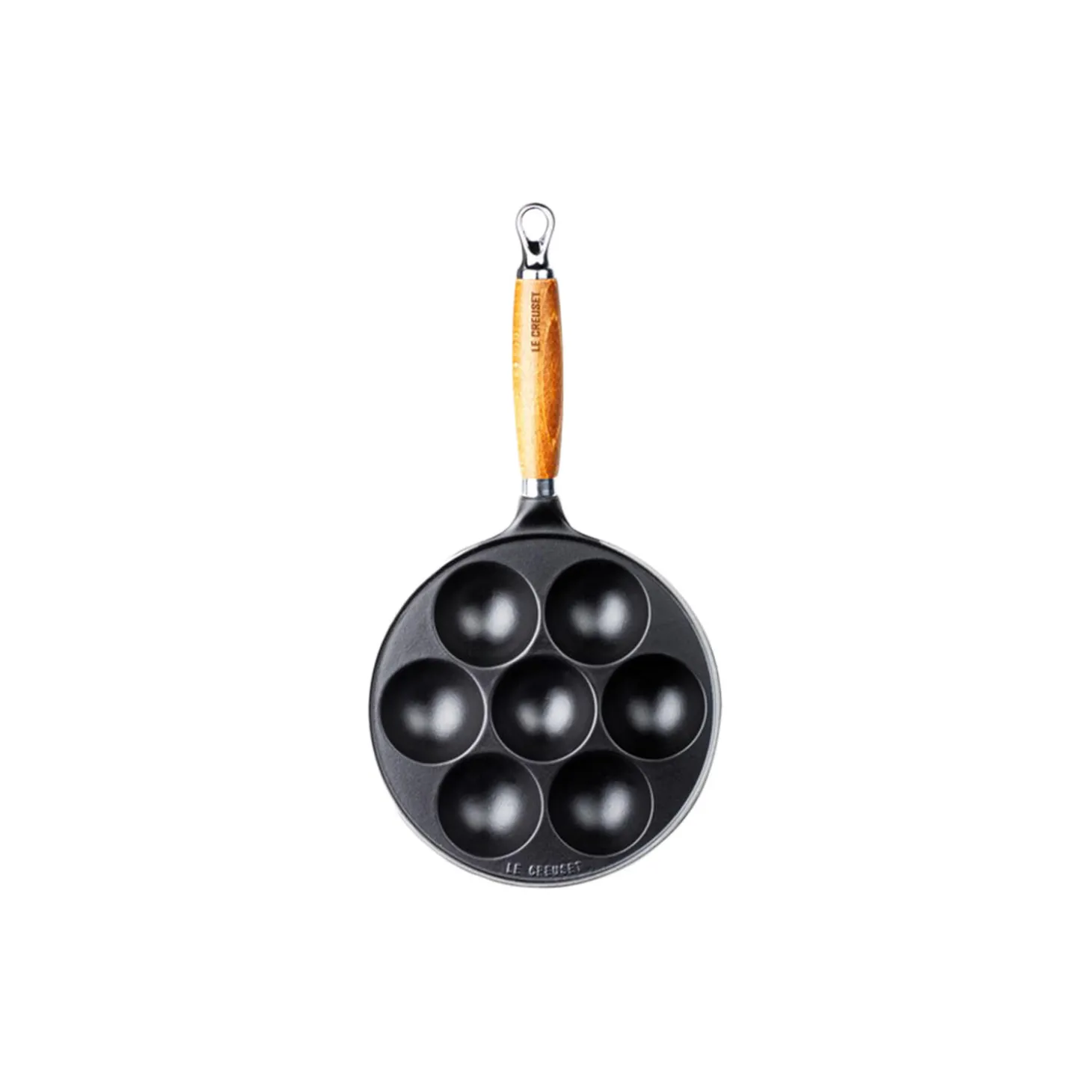 Donuts. Æblebåde. Kødboller. Eller endda tapas. Denne charmerende pande er perfekt til at tilberede enhver delikatesse, der kræver sit egen, separate ‘rum’. Støbejernet lukker smagen inde og hjælper med at fremskynde bruningen for ekstra sprødhed. Det smukke træhåndtag beskytter samtidigt dine hænder mod varmen.
