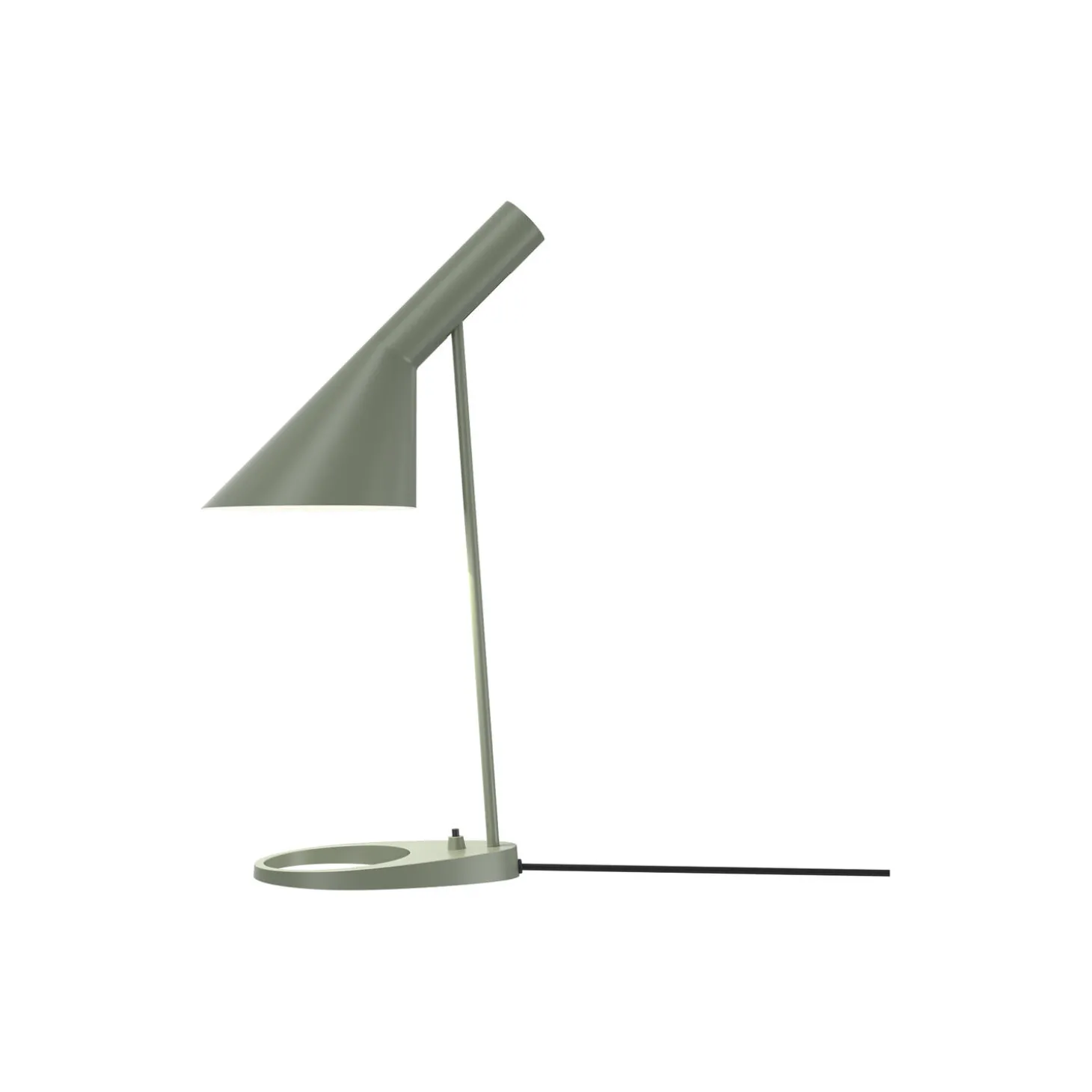 AJ lampen er designet i 1957 til SAS Royal Hotel i København og er et ikonisk design af Arne Jacobsen. Designet er grafisk og rent i sit udtryk, hvilket giver et tidløst look, der passer ind i forskellige farvepaletter, som er afstemt med moderne indretningstrends. AJ bordlampen giver nedadrettet lys, og skærmens vinkel kan justeres, så den passer til brugerens behov. Farven er malet hvid på indersiden, hvilket giver et ensartet, blødt lys.