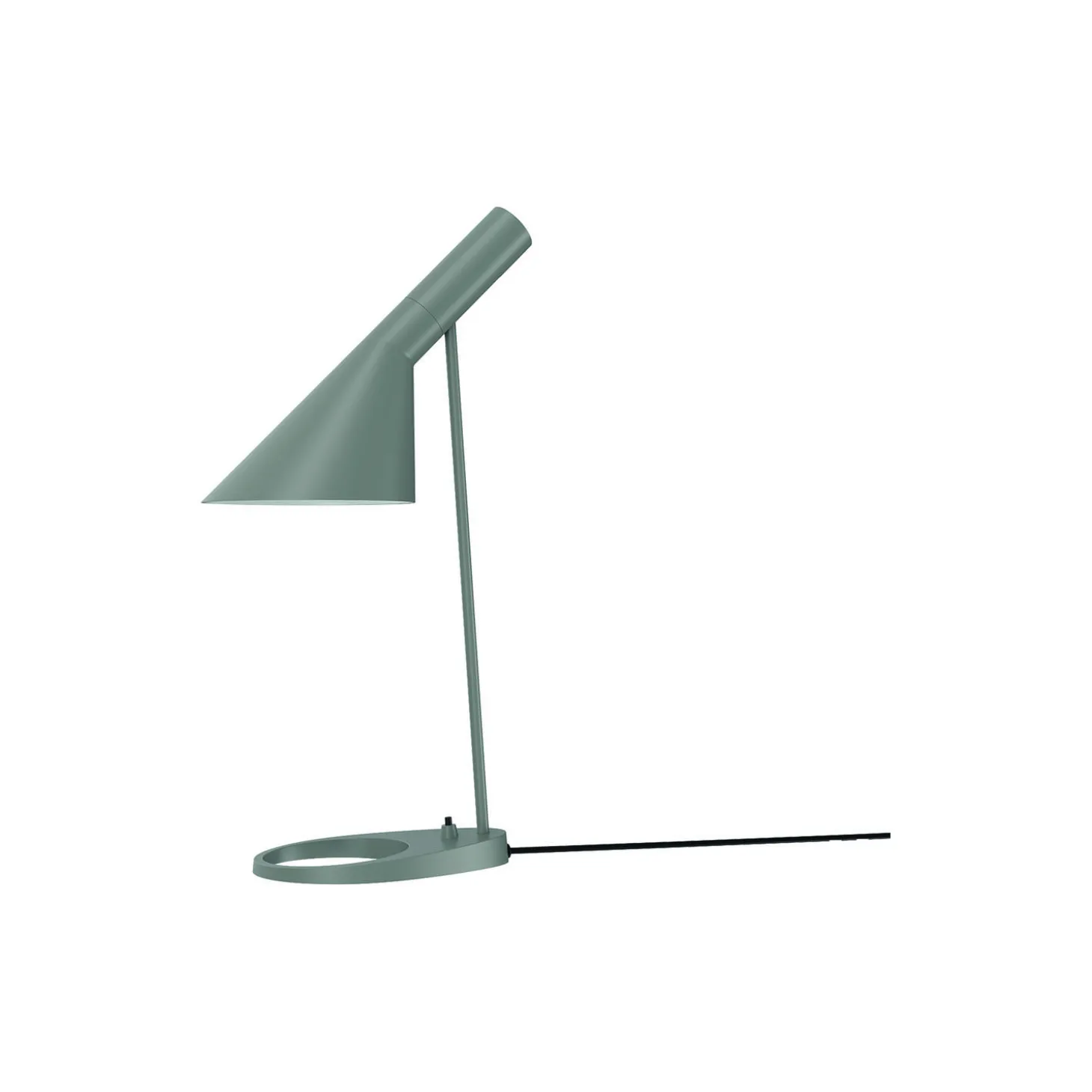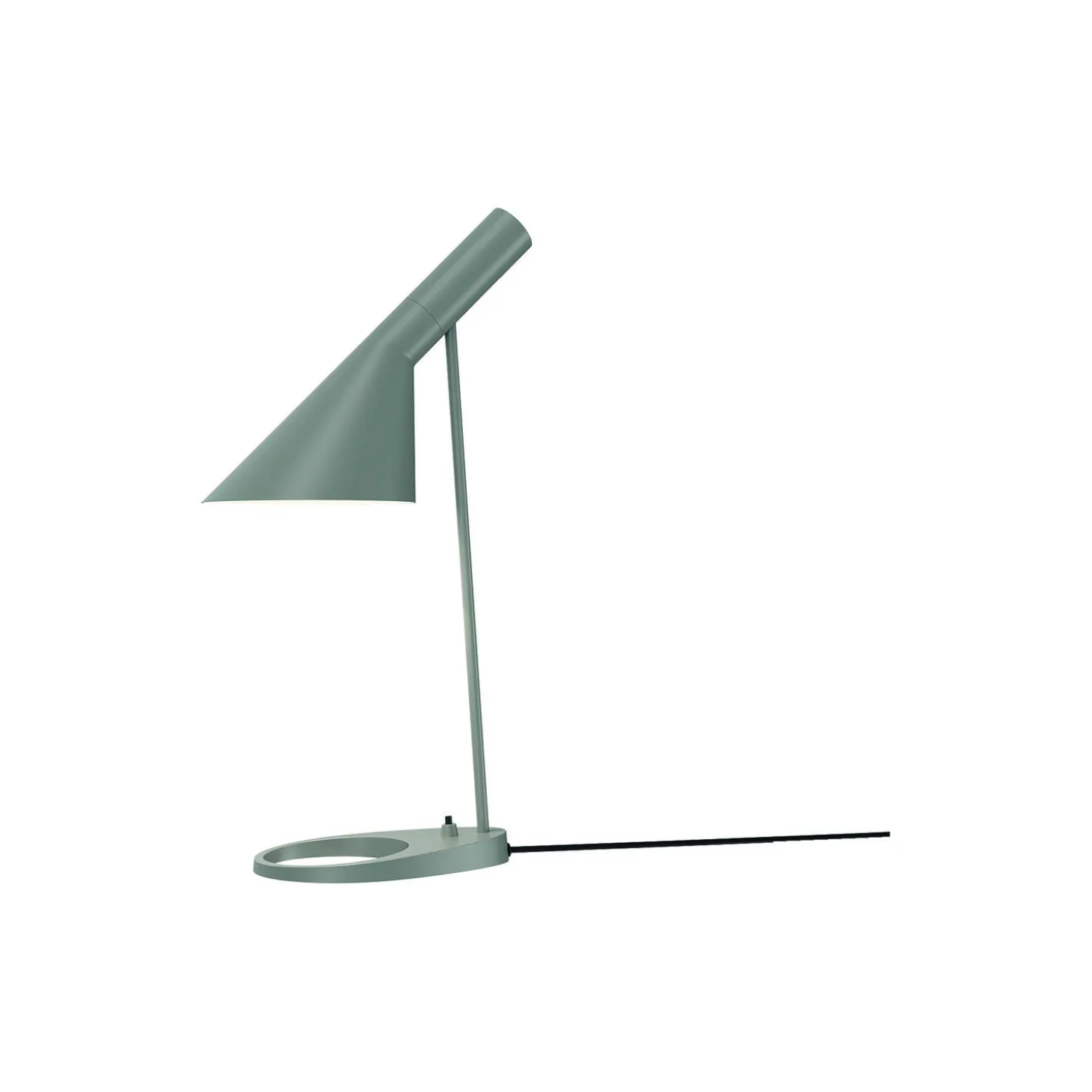 AJ lampen er designet i 1957 til SAS Royal Hotel i København og er et ikonisk design af Arne Jacobsen. Designet er grafisk og rent i sit udtryk, hvilket giver et tidløst look, der passer ind i forskellige farvepaletter, som er afstemt med moderne indretningstrends. AJ bordlampen giver nedadrettet lys, og skærmens vinkel kan justeres, så den passer til brugerens behov. Farven er malet hvid på indersiden, hvilket giver et ensartet, blødt lys.