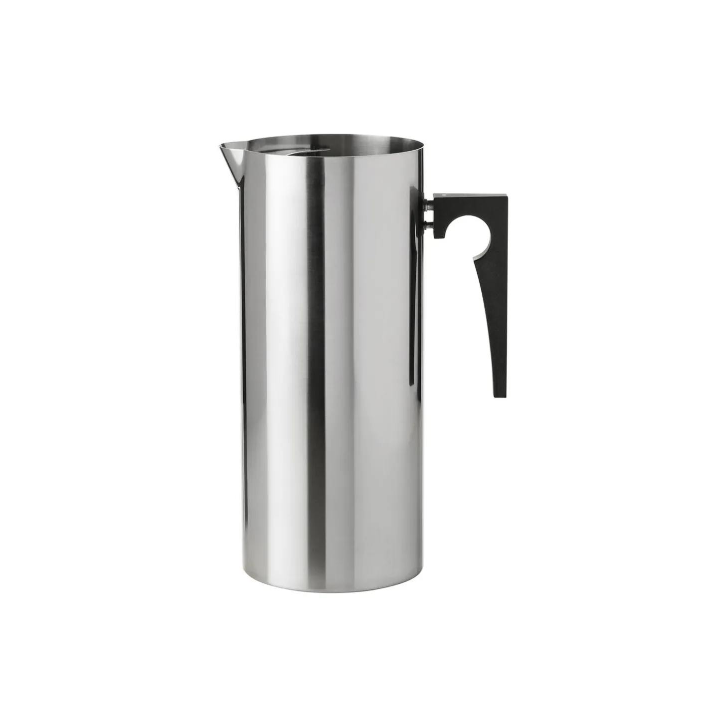 Arne Jacobsens kande med rist fra Cylida-line serien er funktionelt design til hverdag og fest. Kanden i rustfrit stål rummer 2 liter og har en smart rist, som holder isterningerne i kanden og vandet koldt. Kandens sorte hank af bakelit ligger godt i hånden og er placeret med den ideelle hældevinkel.