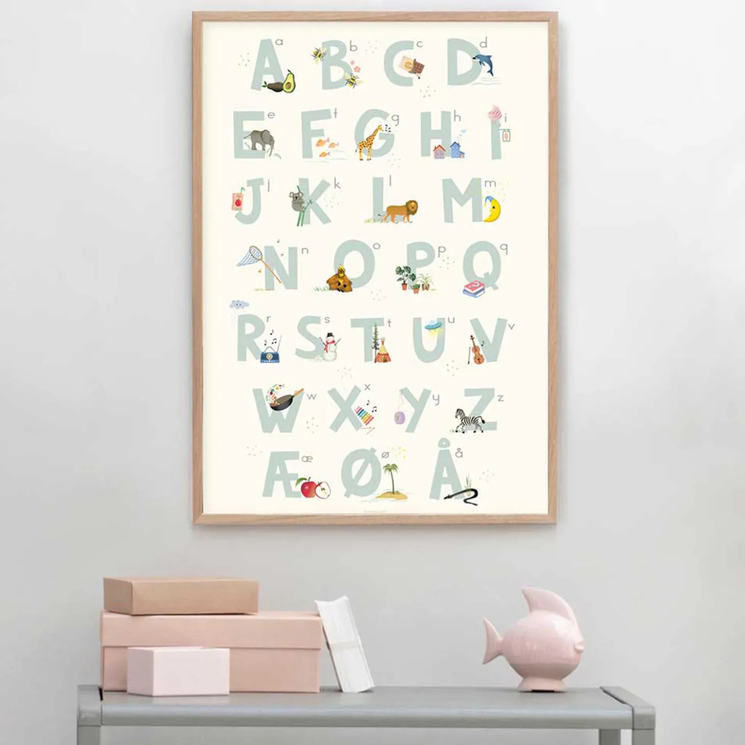 Velkommen til en helt ny verden af bogstaver. Det kan være svært at huske dem alle sammen, men du skal nok lære dem rigtig godt at kende. De har alle sammen deres helt egen lyd og ligesom dig er de hver især helt sin egen. Når du kender dem, kan du lære at skrive og læse.Kan du finde bogstaverne i dit eget navn? Med denne alfabetplakat kan I sammen gøre det sjovt at lære alfabetet. Ved hvert bogstav er et symbol med bogstavet som forbogstav. Plakaterne er FSC certificeret og trykt på 170 gr. Arctic Silk papir produceret i Sverige. Produktet er produceret i Danmark.