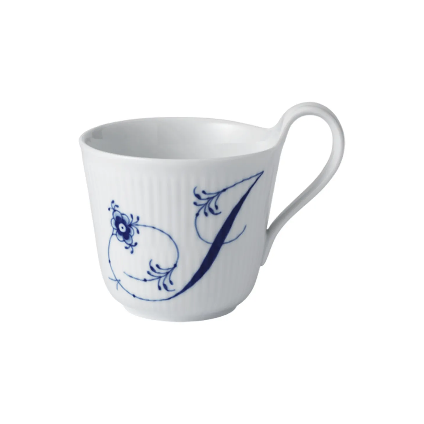 Alfabet krus I i porcelæn fra Royal Copenhagen. Det personlige Alfabet Krus på 33 cl prydes af et håndmalet I, hvorfra der vokser små palmetter og en stiliseret blomst. Drej koppen i hånden, og bagsiden åbenbarer sig med en delikat, blåmalet detalje af florale elementer, som bærer tydelige referencer til Musselmalet Riflet-mønsteret. Brug det charmerende krus til enhver slags varm drik.