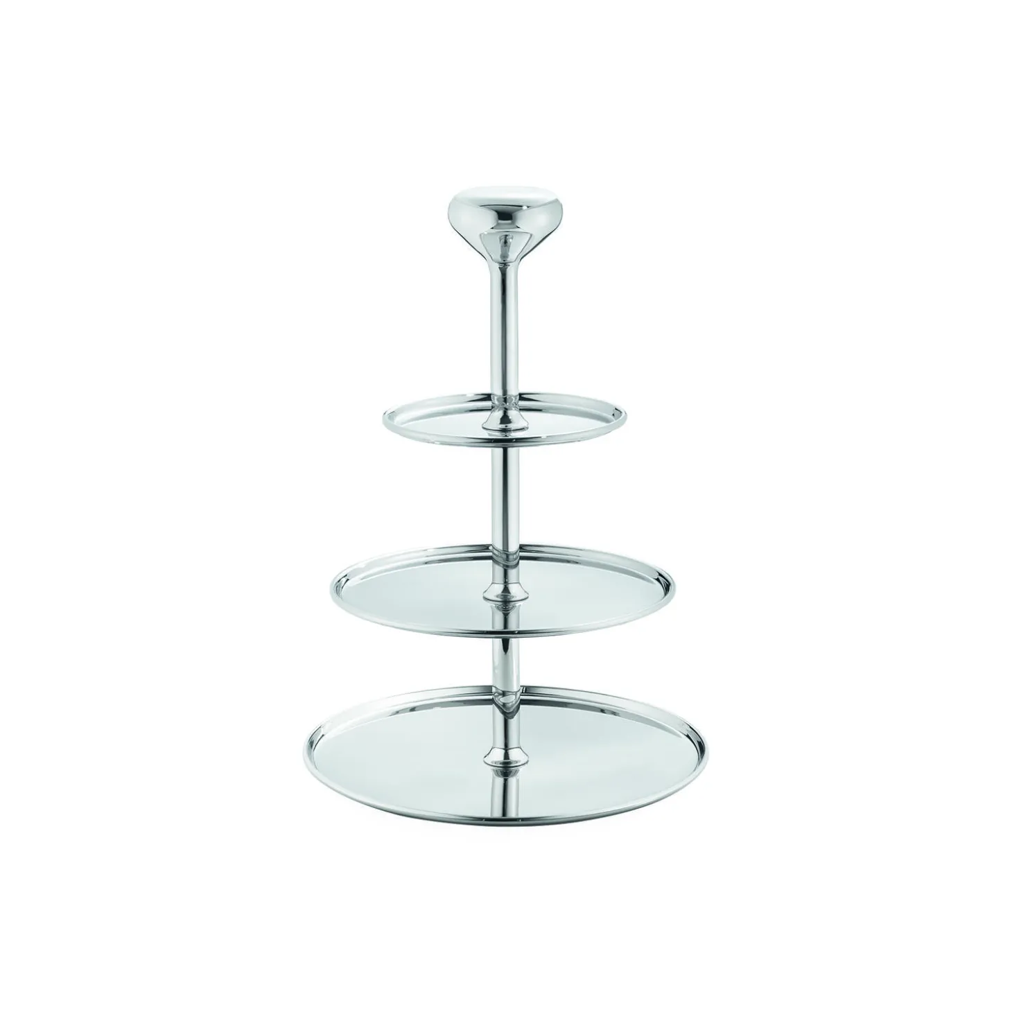 Servér kager og sandwiches på den elegante Alfredo kageopsats i blankt rustfrit stål. Det enkle og moderne stativ har tre etager og er et smukt midtpunkt på bordet. Kageopsatsens runde håndtag går igen i Alfredo kollektionens andre dele og er behageligt at holde om, og det funktionelle design gør det nemt at flytte rundt på stativet.