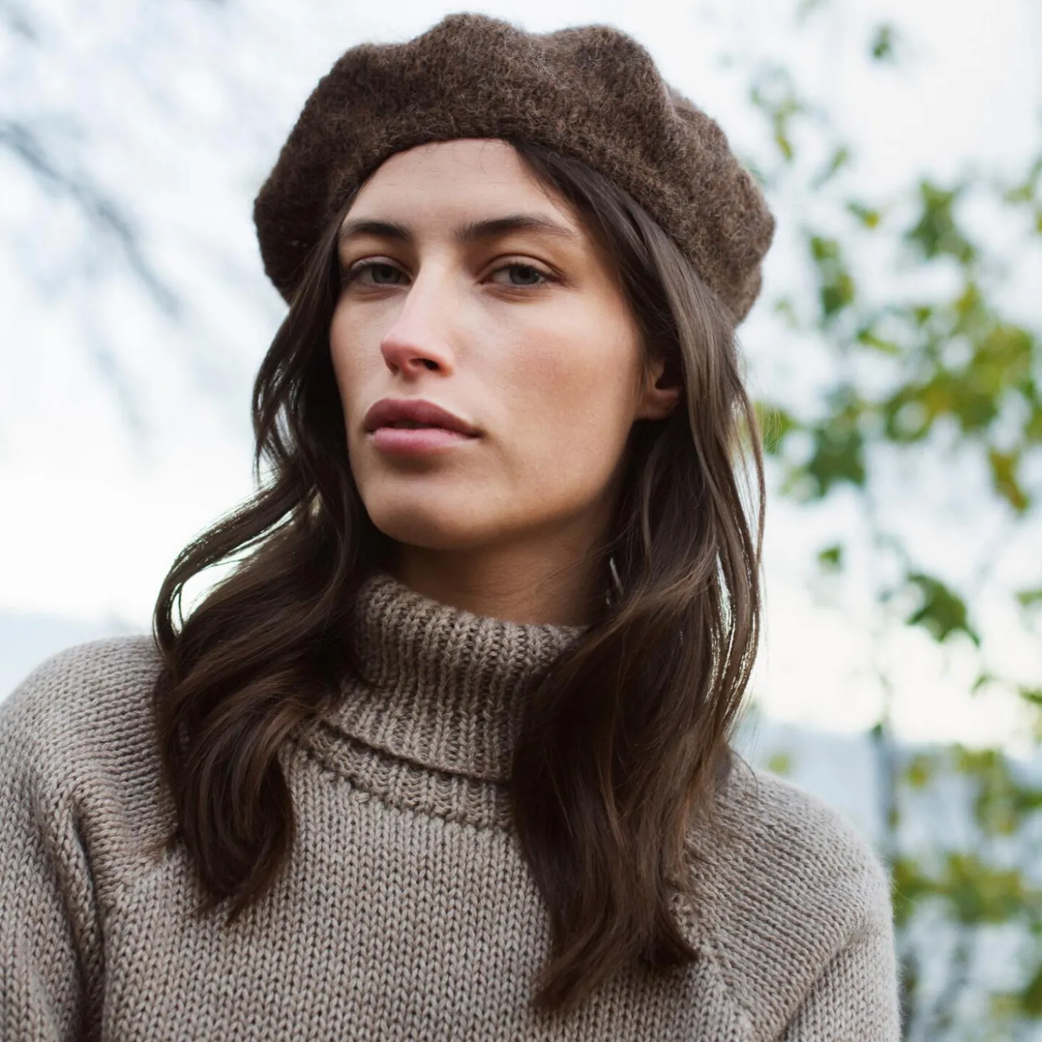 Alpaca Suri Beret, pine cone