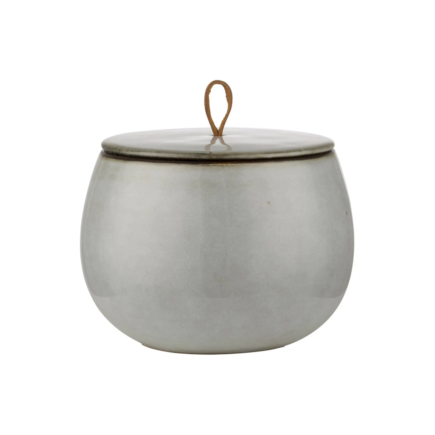 Fin krukke i grå stentøj. Krukken er en del af Amera serien. Charmen og kendetegnet for produkterne i Amera serien er, at produkterne er belagt med dobbelt reaktiv glasur. Dette betyder af der kan forekomme variationer i farve og udseende fra produkt til produkt. OBS: Krukken tåler mikroovn og opvaskemaskine.