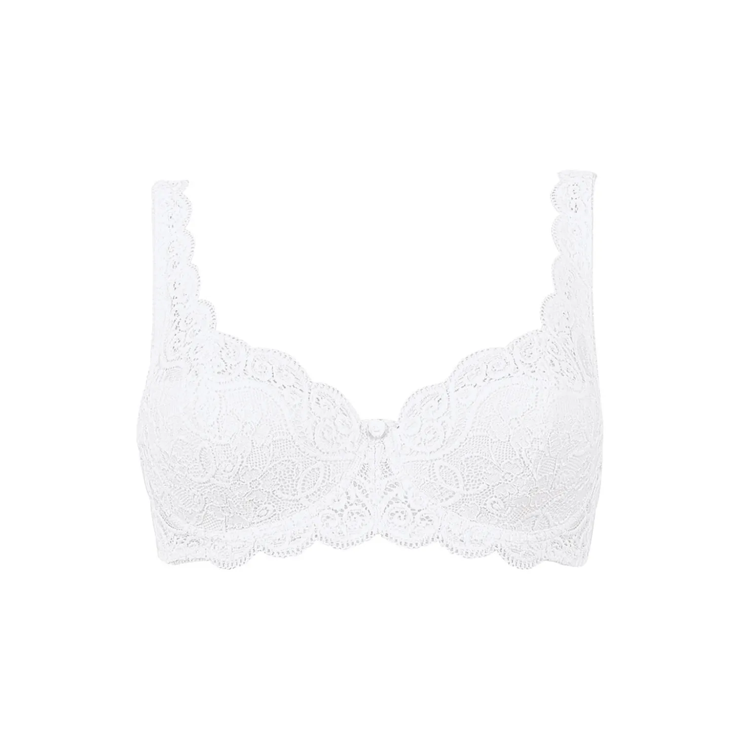 Let polstret bøjle-bh med fin blomsterblonde og elegant picotkant i udskæringen og på stropperne fra Triumphs Amourette 300-serie.- Let polstret bh med formende bøjler- Skåle betrukket med fin tylsblonde- I LYCRA®-kvalitet, der tilpasser sig perfekt til kroppens former og giver maksimal bevægelsesfrihed