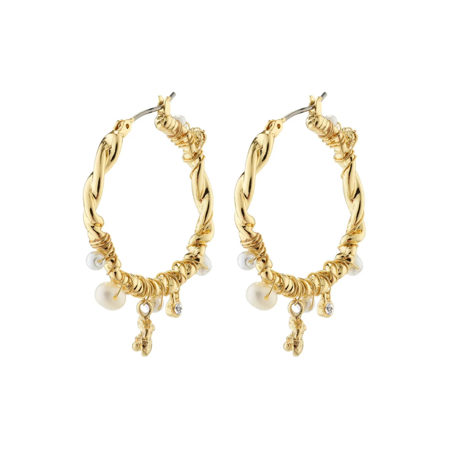 Love is all around! Med de guldbelagte ANA hoops kan du skabe et romantisk look med ægte ferskvandsperler og Preciosa-krystaller. Øreringenes snoede design er inspireret af naturens levende formsprog, og giver en karakterfuld vibe til dit outfit. Style dem med et flowy dress og sommer sandaler for et lux boho udtryk, der er fuld af dreamy vibes.