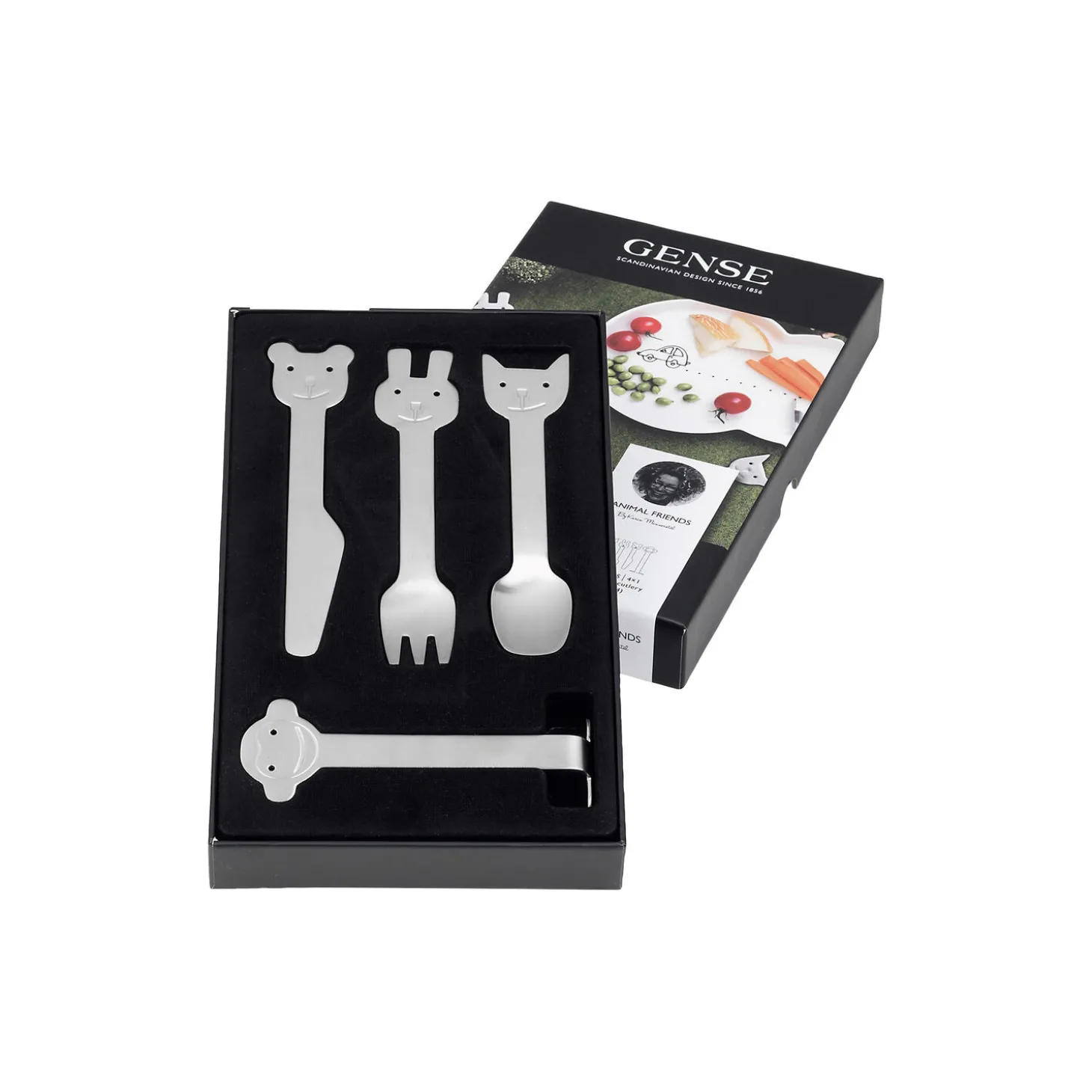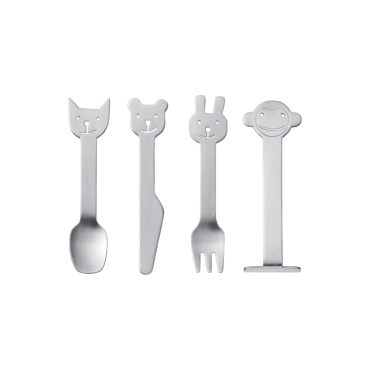Animal Friends er et skønt børnebestik formgivet af Karin Mannerstål. Når den lille kanin, bjørn, kat og abe finder vej til spisebordet, har børnene fået venner, der er glade for at hjælpe med at gøre måltidet endnu sjovere. Perfekt egnet til børn mellem 1-4 år. Tåler opvaskemaskine.