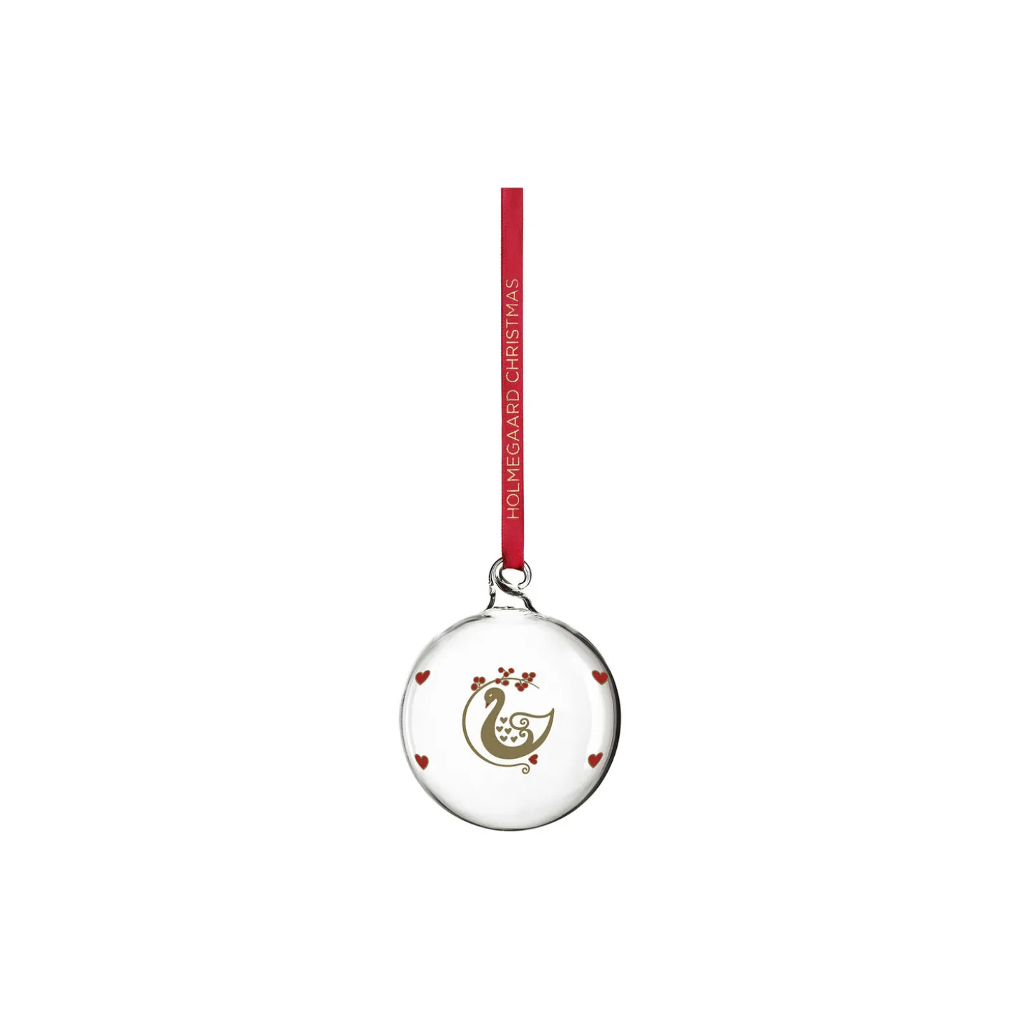 Holmegaard blev grundlagt i 1825. Og med årets glaspynt 2025 fejres 200-årsjubilæet for Holmegaard med udgangspunkt i svanen. Den stolte og elegante fugl er et symbol for Holmegaard, og sammen med små hjerter og en gren med røde vinterbær vil årets motiv smukt og dekorativt udstråle transformation, skønhed og skabe en atmosfære af poetisk glæde. Årets lille julekugle 2025 fra Ann-Sofi Romme er 6,5 cm i diameter og kommer som altid i mundblæst glas. Farverne er holdt klassiske i rød og guld og med en afsluttende metallisk finish, og de små, røde hjerter skaber en hyggelig stemning til hjerternes fest. Den grafiske dekoration er helt i tråd med både juletraditioner og tidens farvetrend med matchende røde silkesnore, der indbyder til ophæng på træet, i vinduet eller på grangrene rundtomkring i hjemmet sammen med resten af den nostalgiske serie. Med sin klassiske juleserie for Holmegaard har Ann-Sofi Romme skabt en enkel og original julefortælling, der for mange er forbundet med genkendelsens glæde og refleksioner over julens romantiske øjeblikke. Hvert år har hun fortalt videre på det juleeventyr, som hun begyndte med sin klokke for Holmegaard tilbage i 1993.