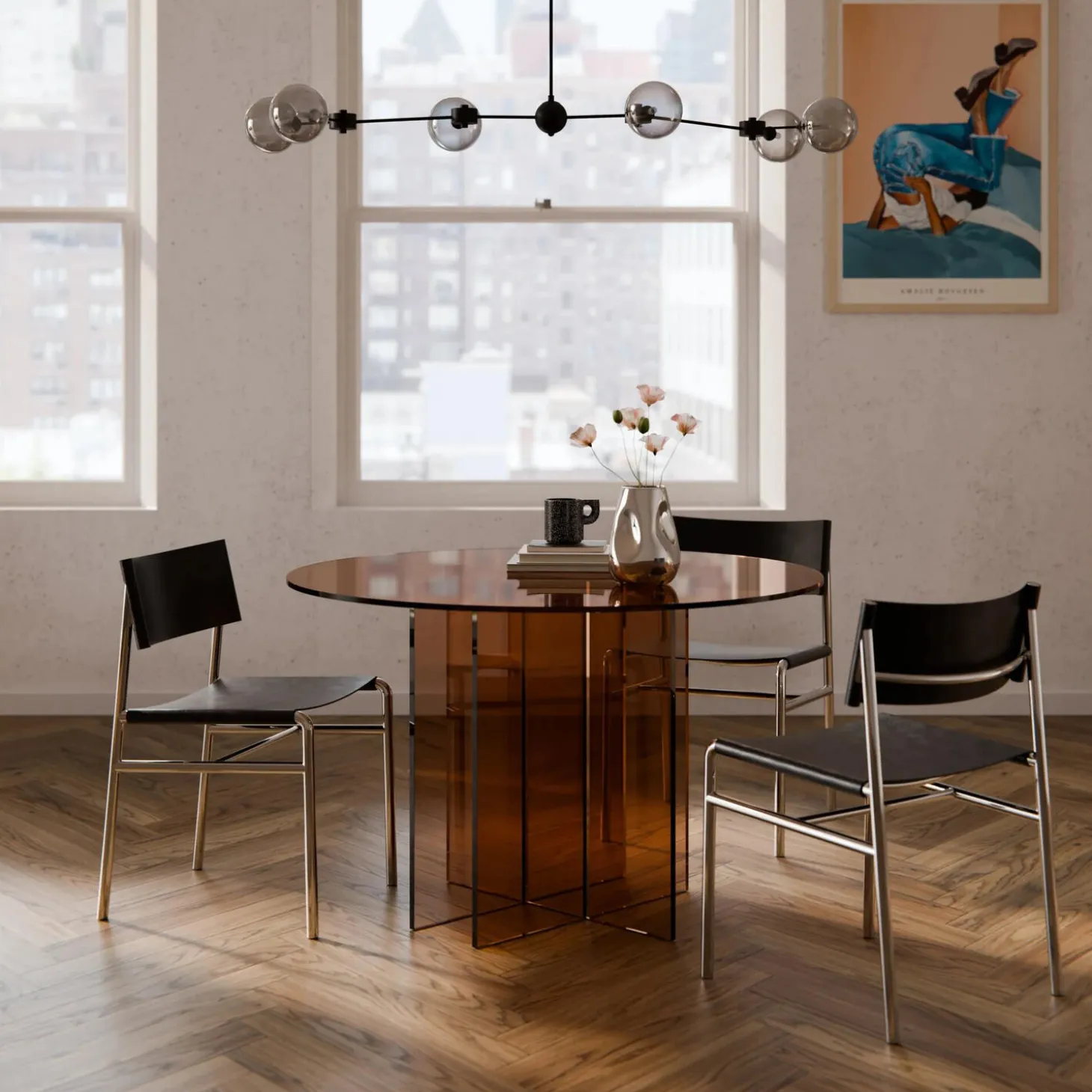 Tidløs med et moderne twist – det er ANOUK: den imponerende glaskonstruktion med en cool, gennemsigtig effekt giver dit interiør en helt speciel karakter! Dette bord er velegnet til op til fire personer. Produktet leveres i en pladsbesparende emballage og kan anvendes med det samme efter montering af benene. .