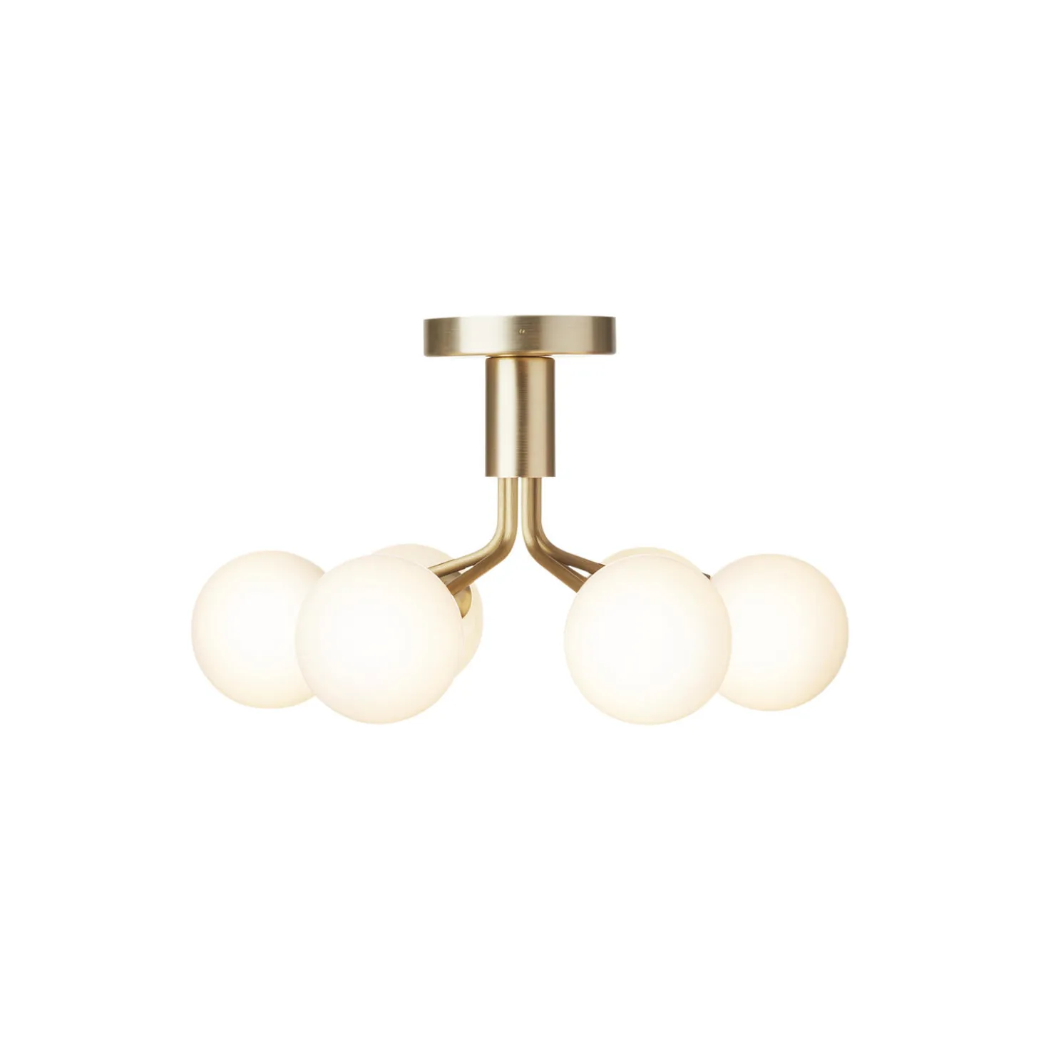 Apiales 6 Ceiling er en loftmonteret lampe inspireret af blomster. Fra en specialproduceret kappe skyder 6 metalarme i sort satin finish ud som blomsterstilke og udfolder sig med opalhvide glaskupler. Den sort-hvide kontrast mellem metal og glas giver denne moderne loftslampe et simpelt udtryk. Apiales 6 Ceiling har en højde på blot 29 cm, hvilket gør loftslampen egnet til små rum og rum med lavt til loftet.