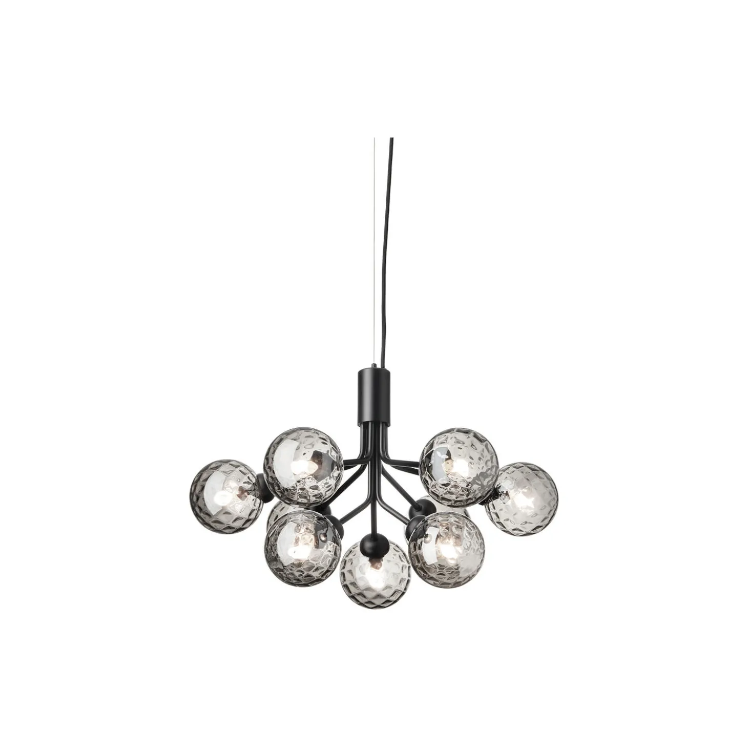 Med inspiration fra blomster har Sofie Refer designet lysekronekollektion, Apiales. Apiales 9 består af ni mundblæste glaskupler og fås i gylden Brushed Brass Finish eller fløjlsblød Satin Black. Fra en specialproduceret kappe folder de elegante rør sig ud som blomsterstilke og fuldendes af de mundblæste glas, hvorfra lyset spredes med ynde og sanselighed. Apiales 9, passer med sin diameter på 60 cm over spisebordet, i soveværelset eller hallen.