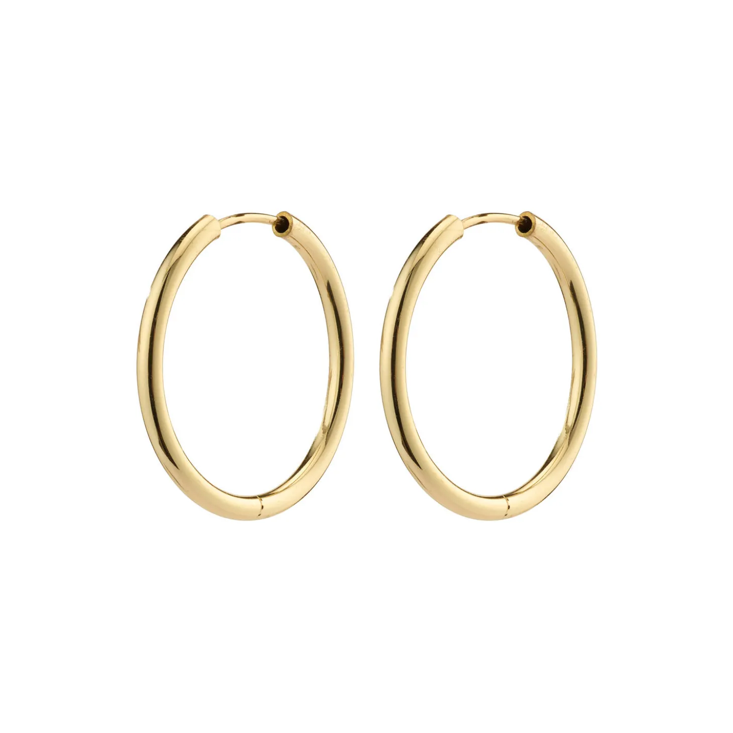 Simple, smooth, and elegant! Små, guldbelagte hoops fra Pilgrim, der måler 20 mm i diameter. Brug de klassiske evergreens til små og store occasions, og mix og match med andre items for et personligt look. Geniale pieces til en ear curation style med asymmetriske kædeøreringe og ear cuffs. You decide! Øreringene er recycled og lavet af 99% genanvendt materiale.