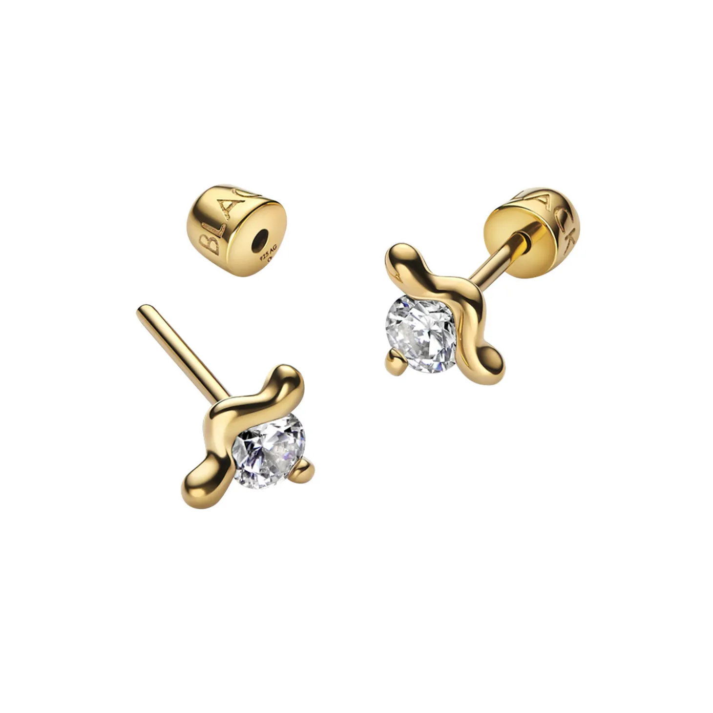Designed in Denmark. Skilfully crafted in recycled sterling silver. Stud earring with white zirconia in a warped prong setting. Nickel free and hypoallergenic. Signature bullet back fastening for a luxurious fit.
