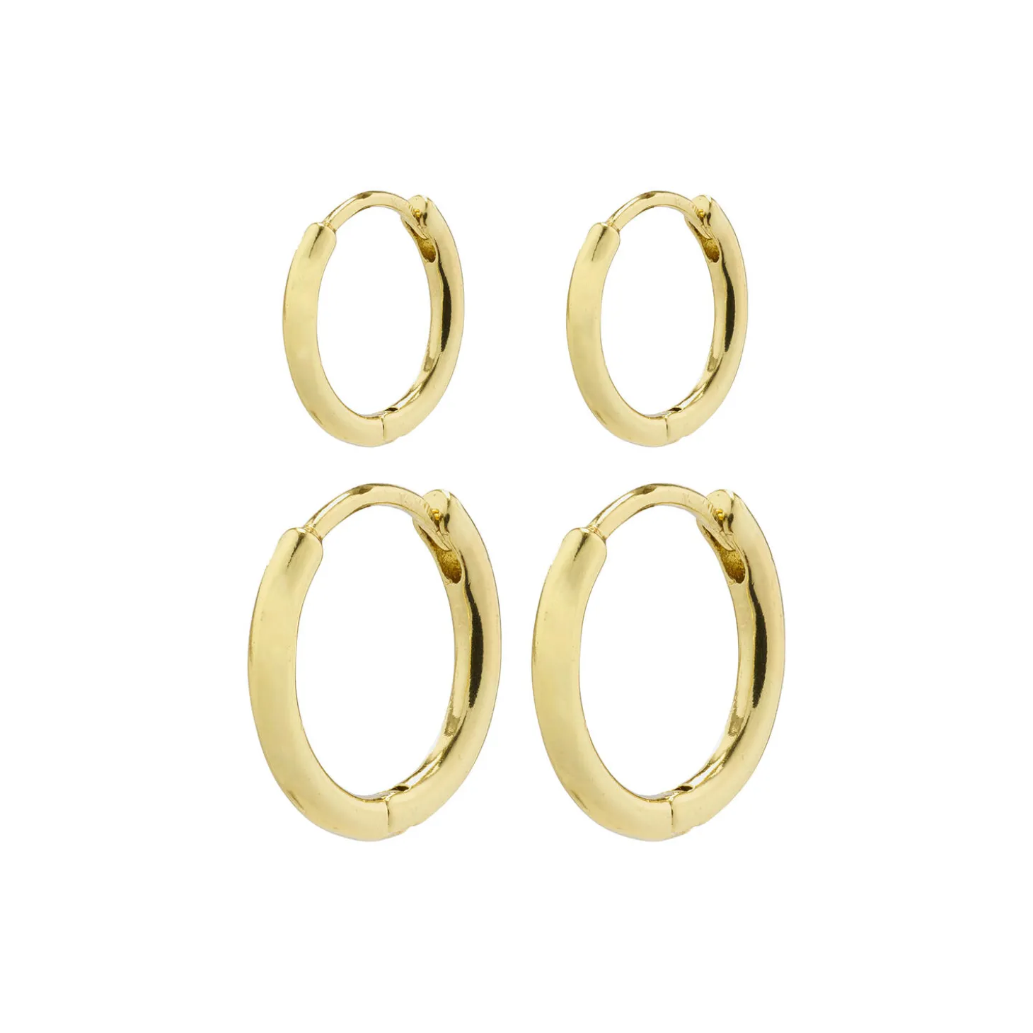 Drops of joy! Pilgrims guldbelagte ARIELLA 2-i-1-sæt små huggie hoops giver dig små drops of happiness til alle dine everyday styles. Øreringenes chunky shape og shiny overflade tilfører et light og positive touch til dit outfit. Style dem med en enkel chain-halskæde for et cute and casual look.
