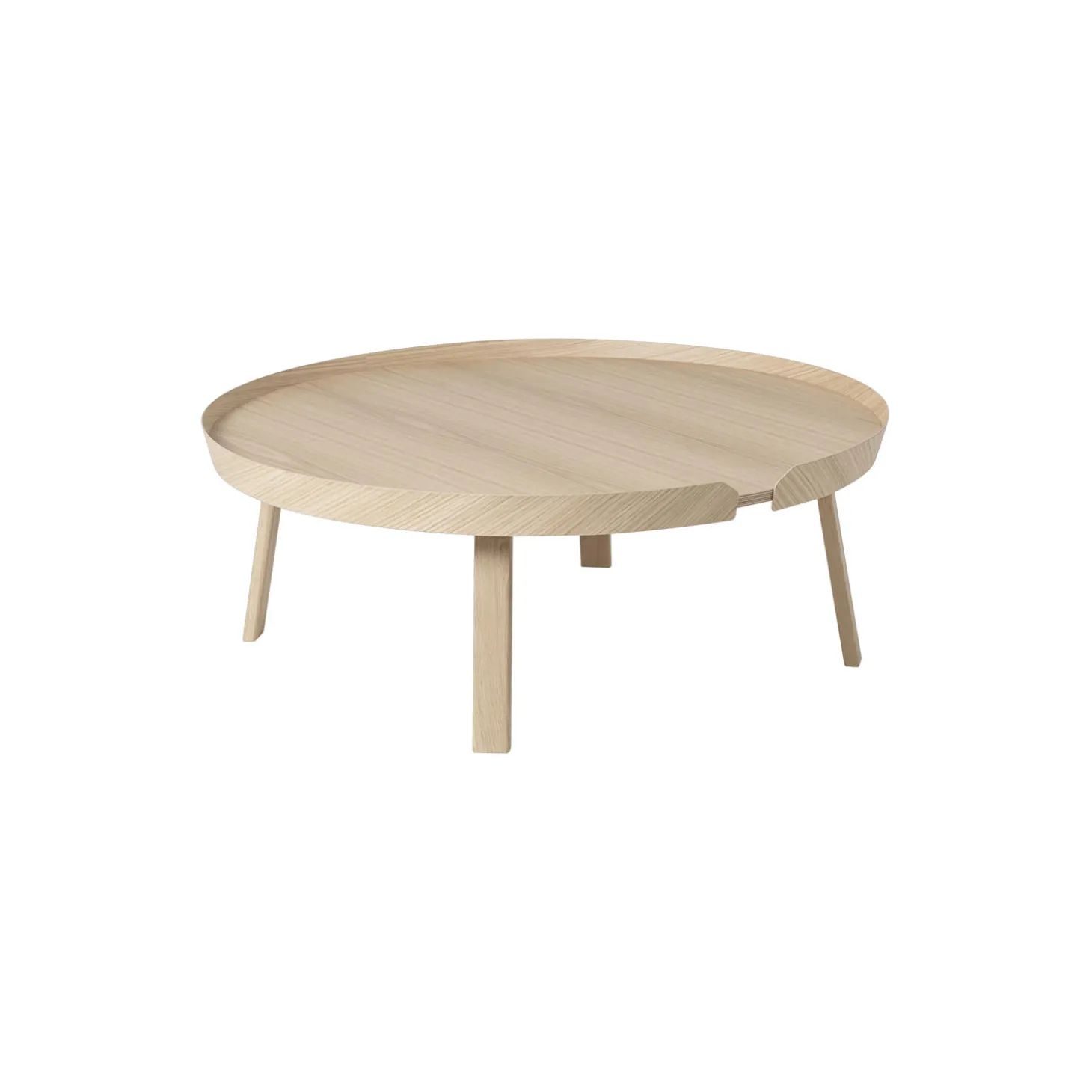 Around Coffee Table from Muuto. The Around Coffee Table brings a new perspective to its typology through the characterful wooden veneer frame that runs along the edge of the table, echoing the ideas of Scandinavian design. With its round shape and multiple sizes, the Around Coffee Table can be used in a multitude of settings.