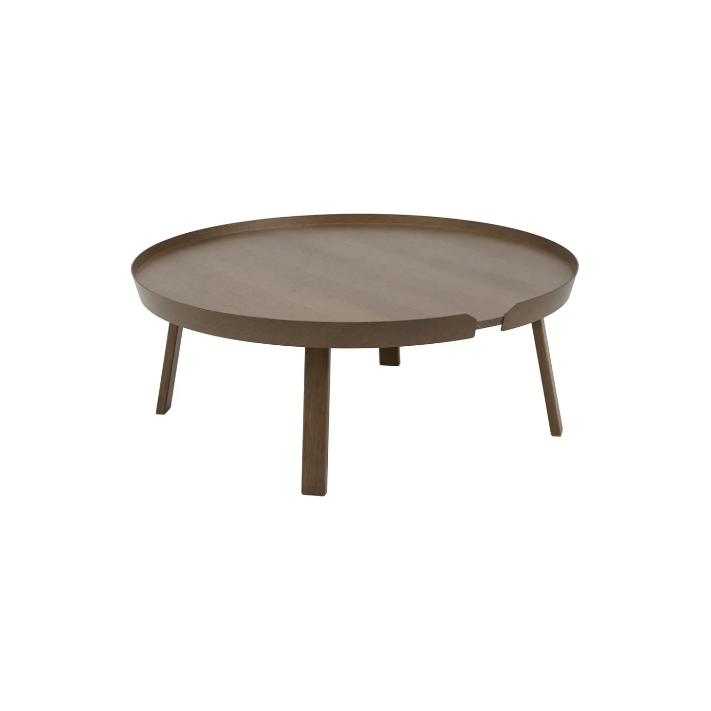 Around Coffee Table from Muuto. The Around Coffee Table brings a new perspective to its typology through the characterful wooden veneer frame that runs along the edge of the table, echoing the ideas of Scandinavian design. With its round shape and multiple sizes, the Around Coffee Table can be used in a multitude of settings.