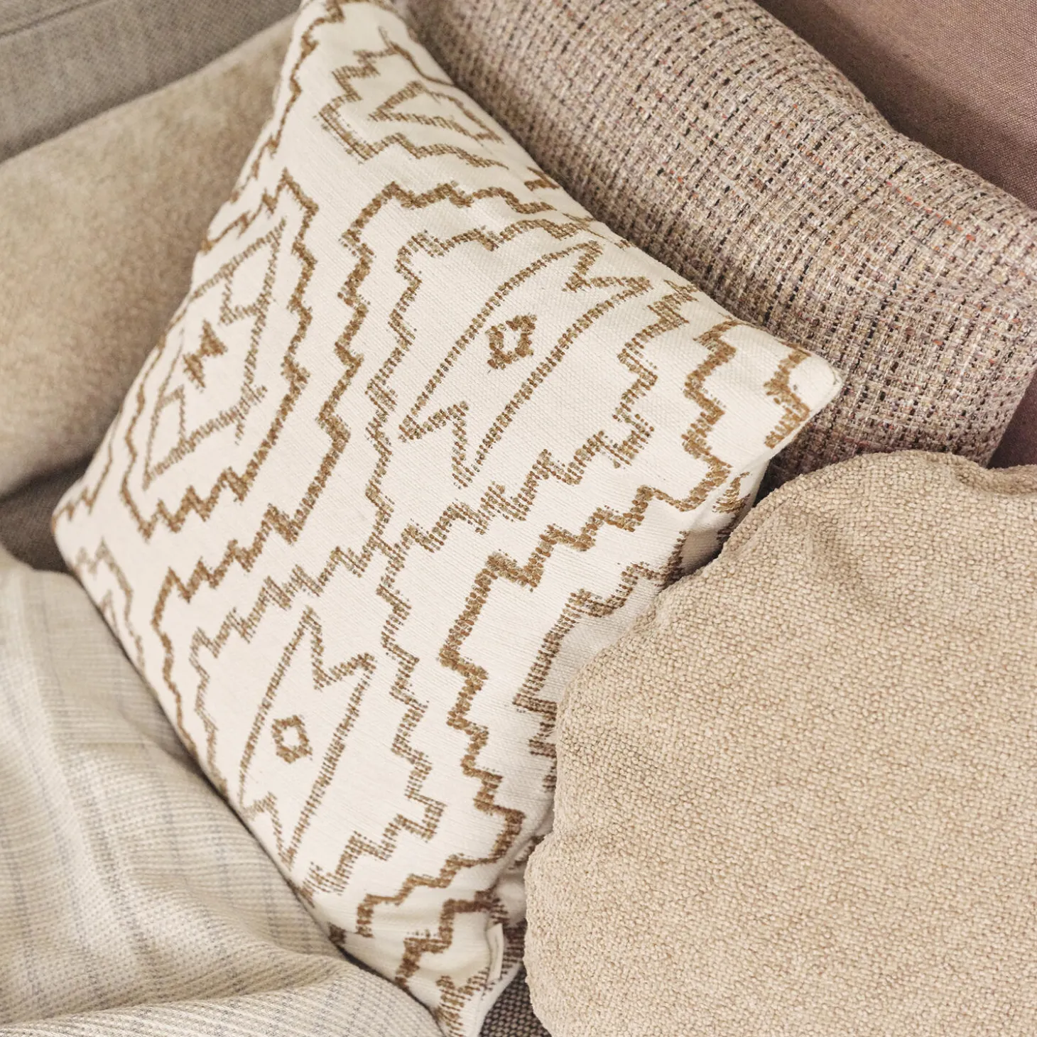 Med et let mønster efter græsk inspiration leder den fine ATHEN pude tankerne mod varmere himmelstrøg og uendelige dage med sol og vand. Det jacquard-vævede mønster i bouclé og kanvas giver et klassisk, men moderne look og skaber en indbydende stemning i din indretning.